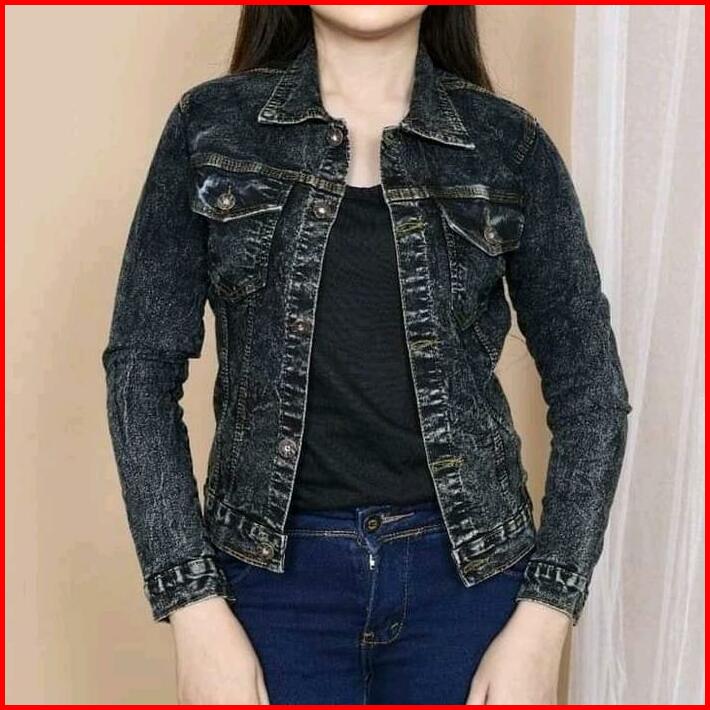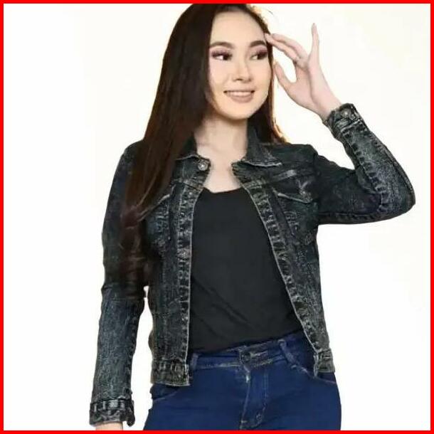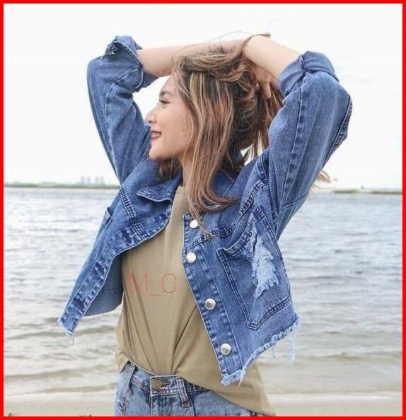 Jacket Jeans Style Wanita Korean Fashion Slim-fitting Polos Canvas Cewek Crop Denim Jaket Panjang Outer