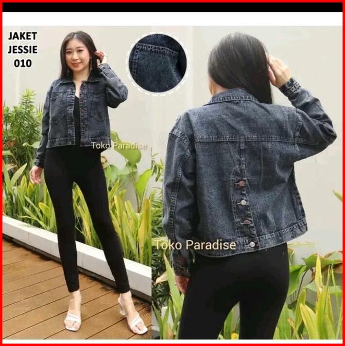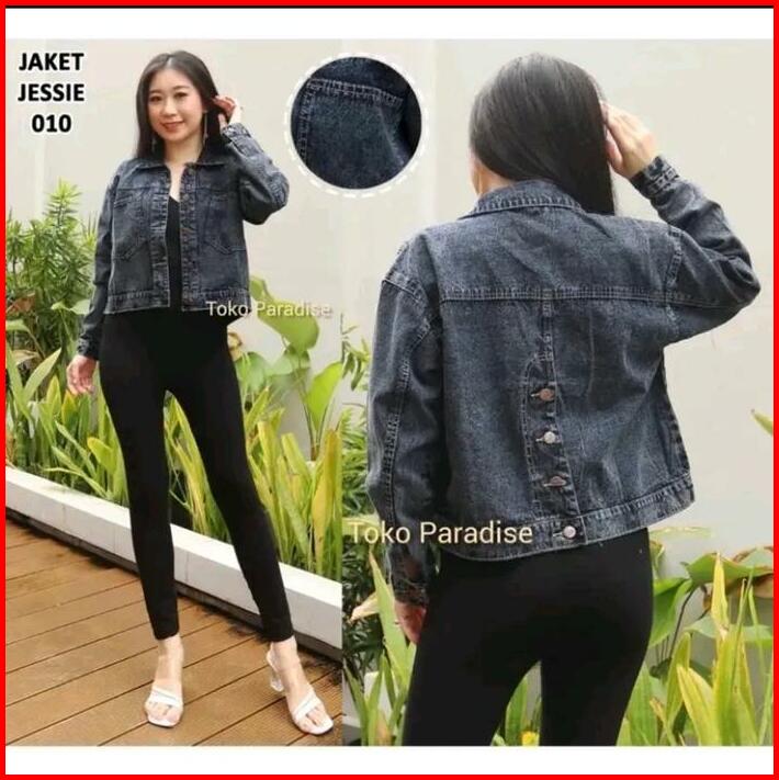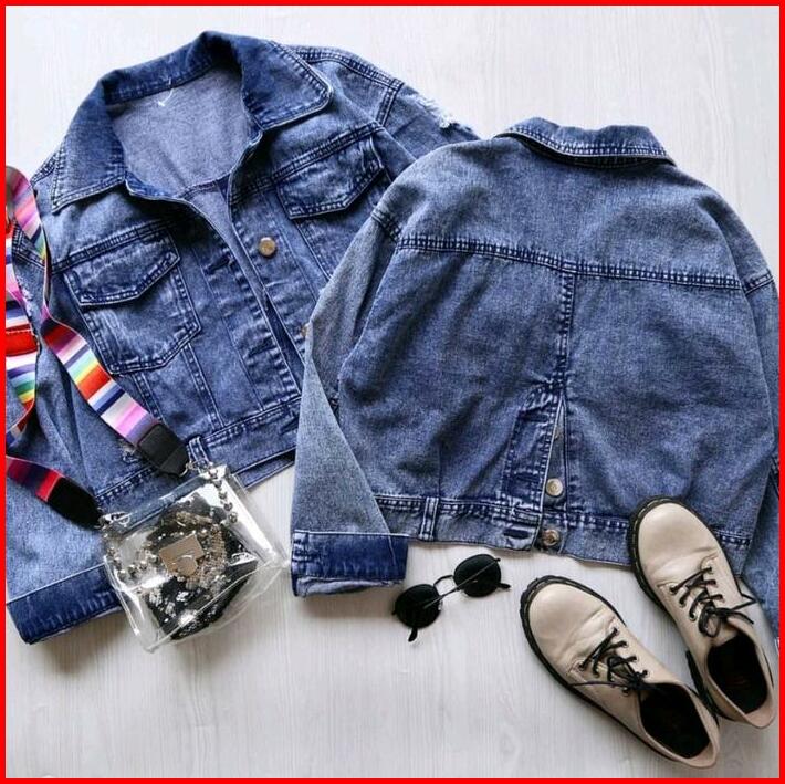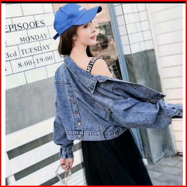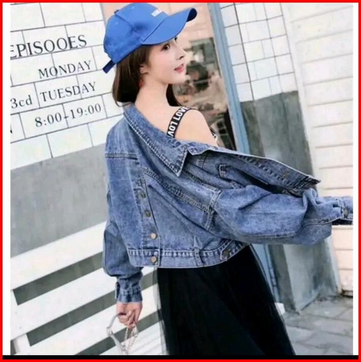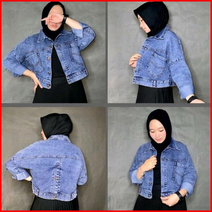 Jaket Jeans Crop Kancing Belakang Jumbo Wanita Ld 120 Fit Denim Tebal Oversize Cewek Blazer Variasi Tangan Blazer Varias