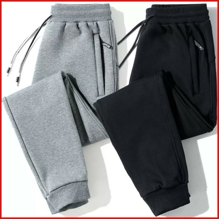 Celana Training Olahraga Panjang Polos Pria Bahan Katun Flecee