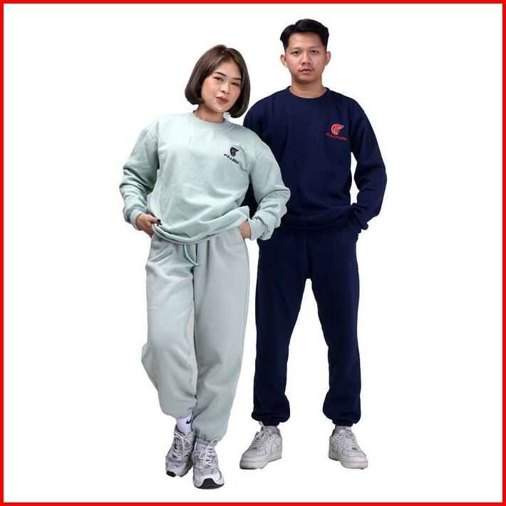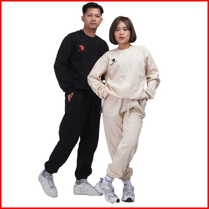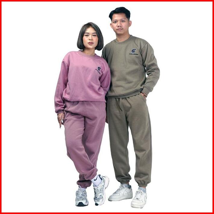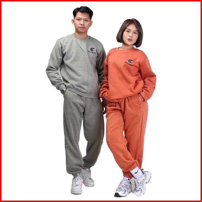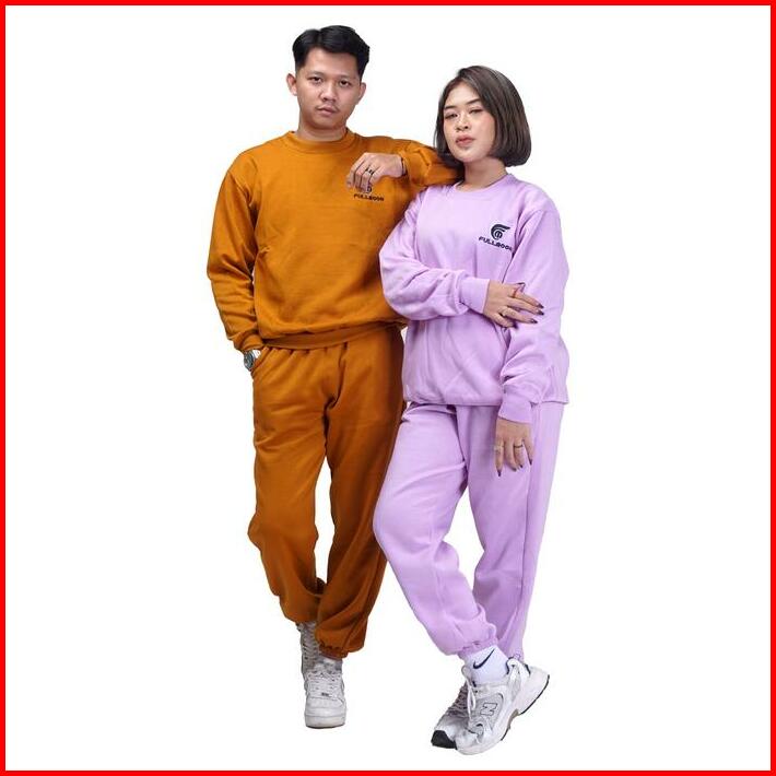 Fullmoon Satu Stel Oneset Sweater Crewneck Dan Celana Panjang Training Jogger Bahan Fleece Tebal Unisex Pria Dan Wanita