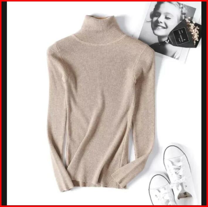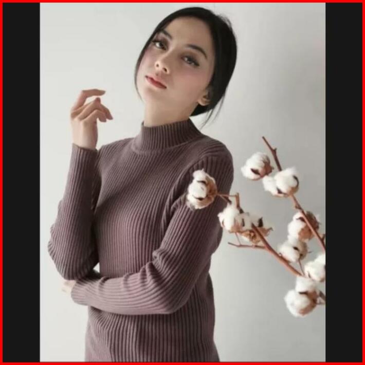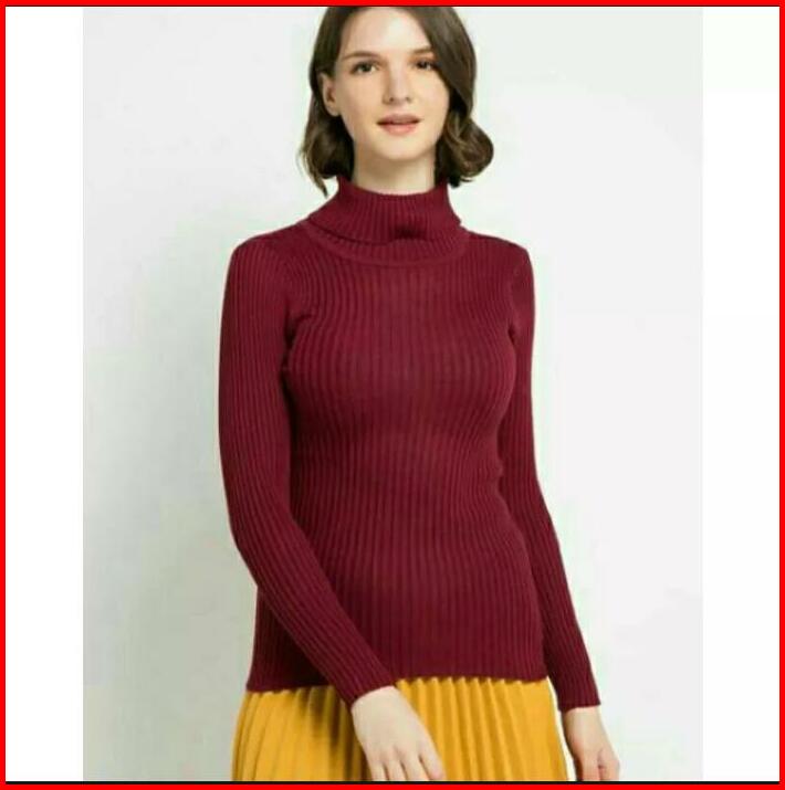 Inner Rajut Turtleneck Wanita Lengan Panjang Baju Cantik Fit Atasan Top Kerah Sweater Crop Knitwear Outer Tangan Tebal N