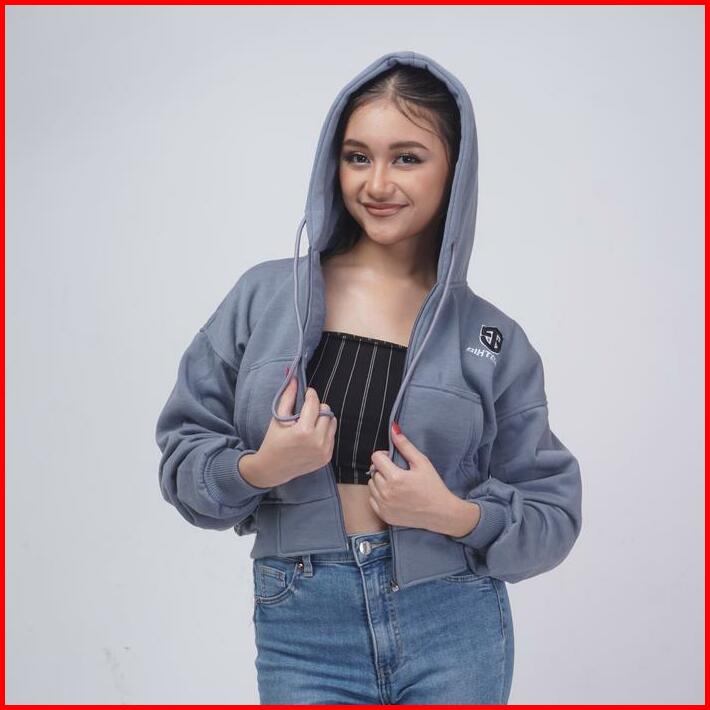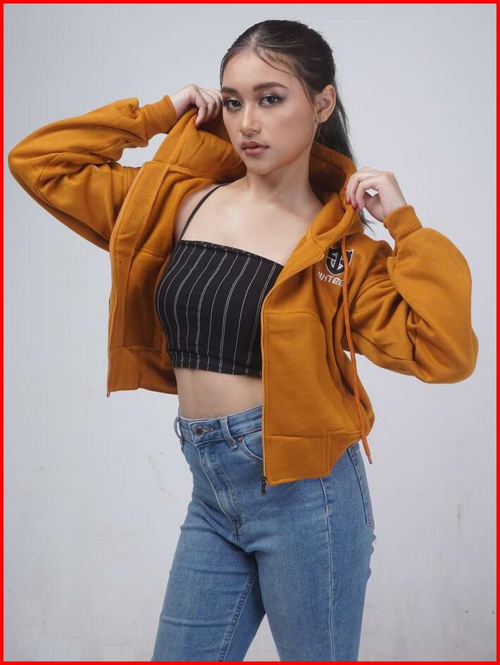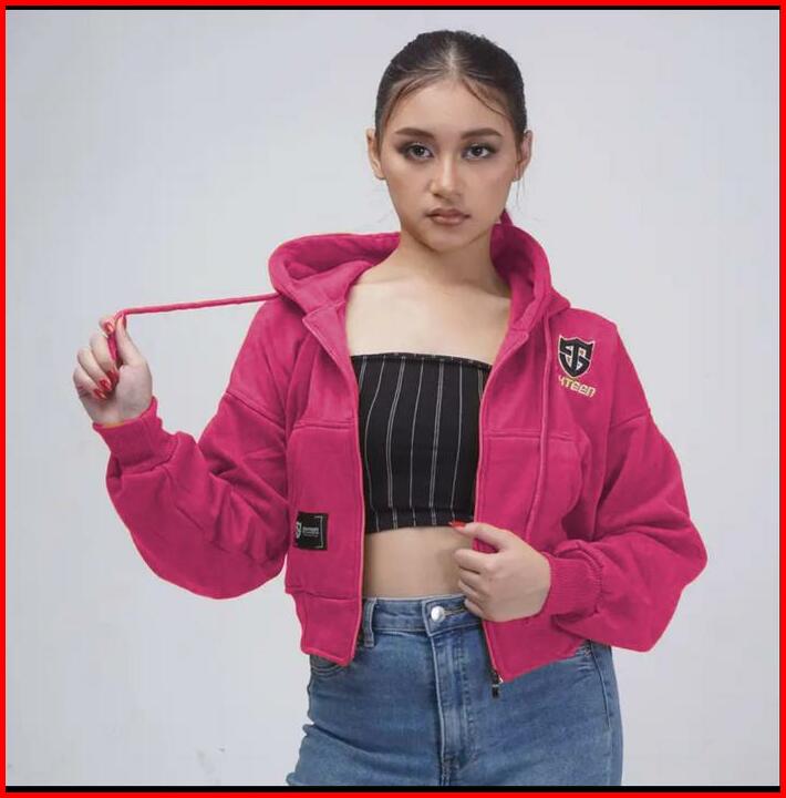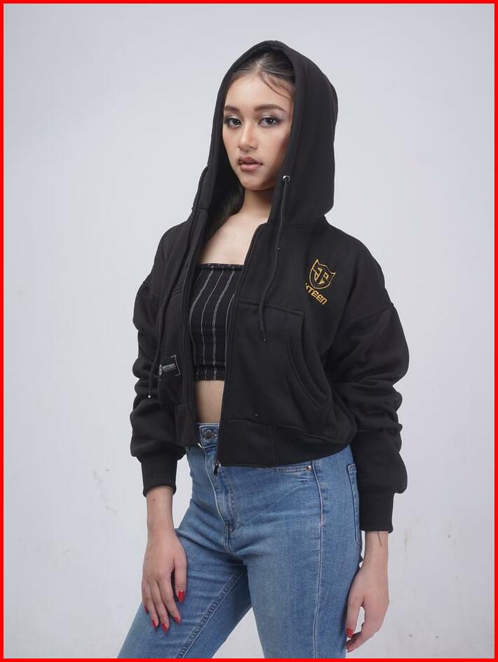 Sixteen Crop Zipper Sleting Hoodie Bahan Fleece Tebal
