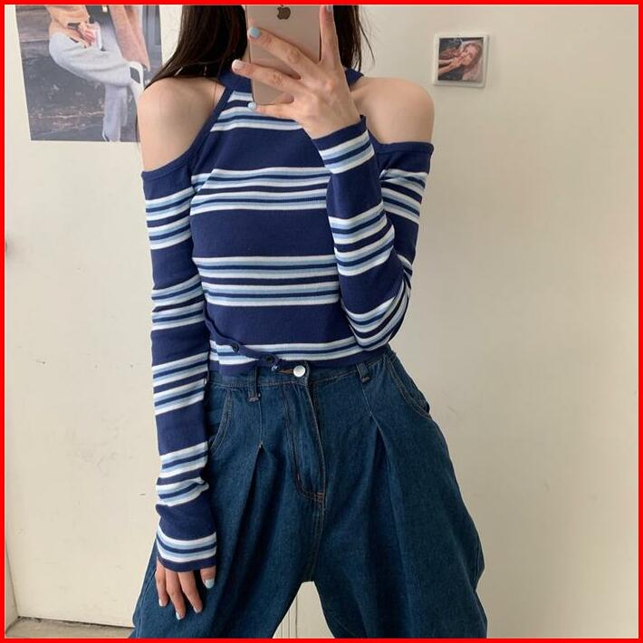 Telly 023 Atasan Rajut Wanita Shoulder Off Top Lengan Panjang Lembut Nyaman Baju Crop Knitwear Sweater