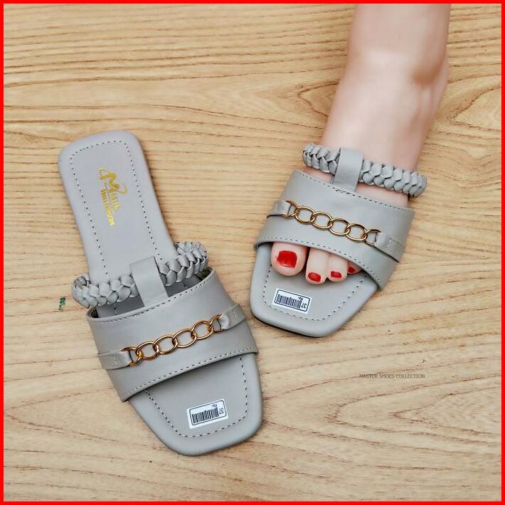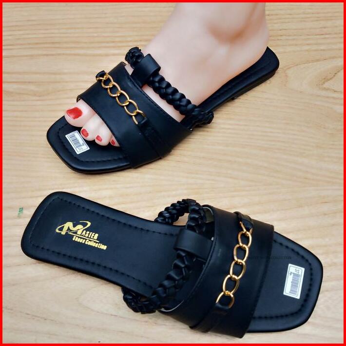 Master Shoes Sandal Teplek Slop Wanita Tali Kepang Kombinasi Rantai Premium Sendal Selop Perempuan Tali Ayam Kekinian Te