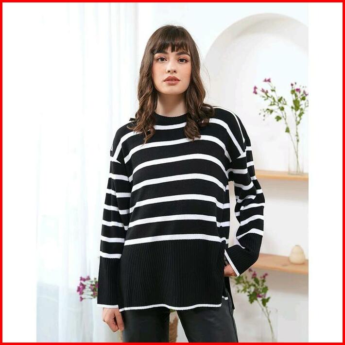 Haru Knit Oversize Sweater Motif Garis Sweater Korea Atasan Rajut Wanita Baju Rajut Motif Garis