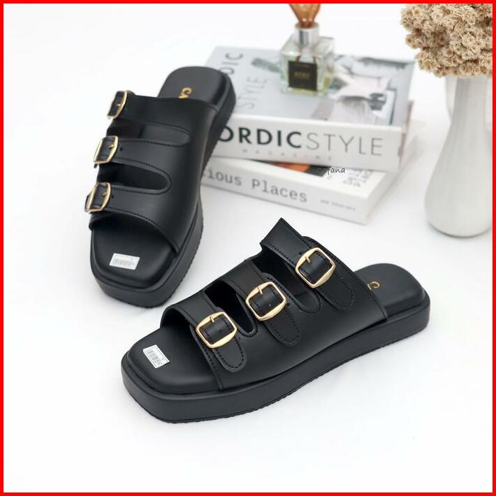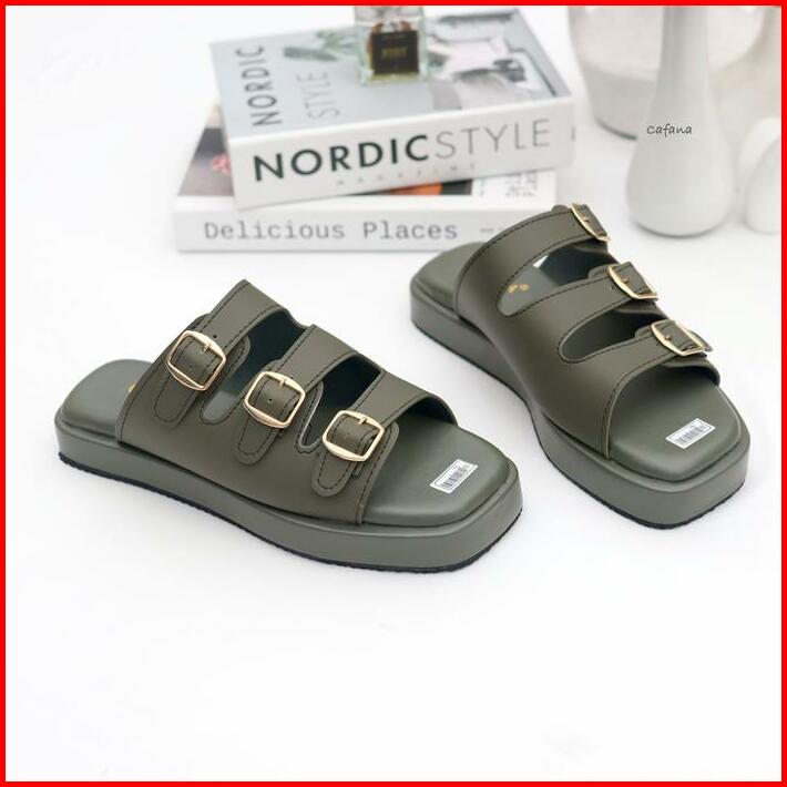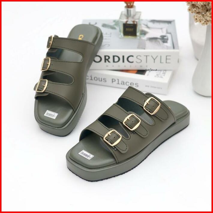 Sandal Wanita Slop Gesper Aleta Sdl138 Sol Karet Ringan