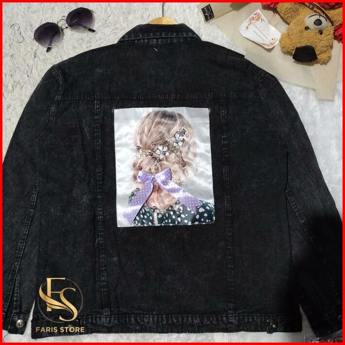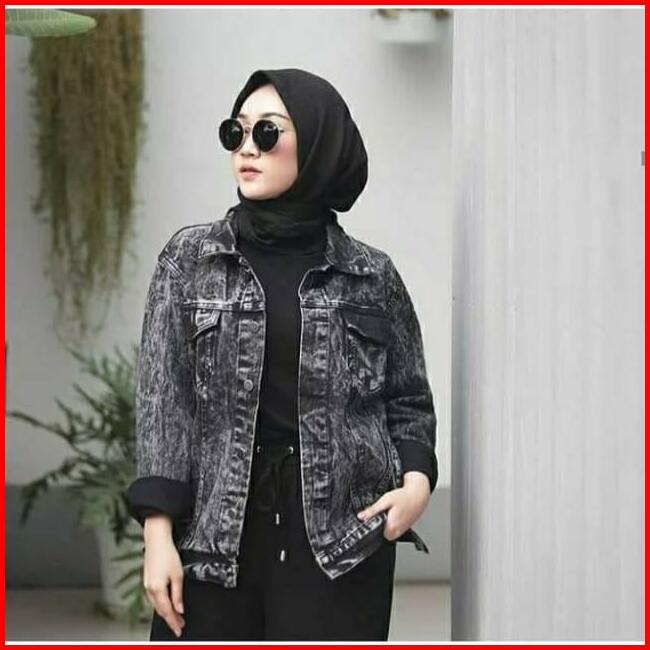 Jaket Jeans Wanita Oversize Jaket Denim Snow Black Snow Blue Wanita Viral