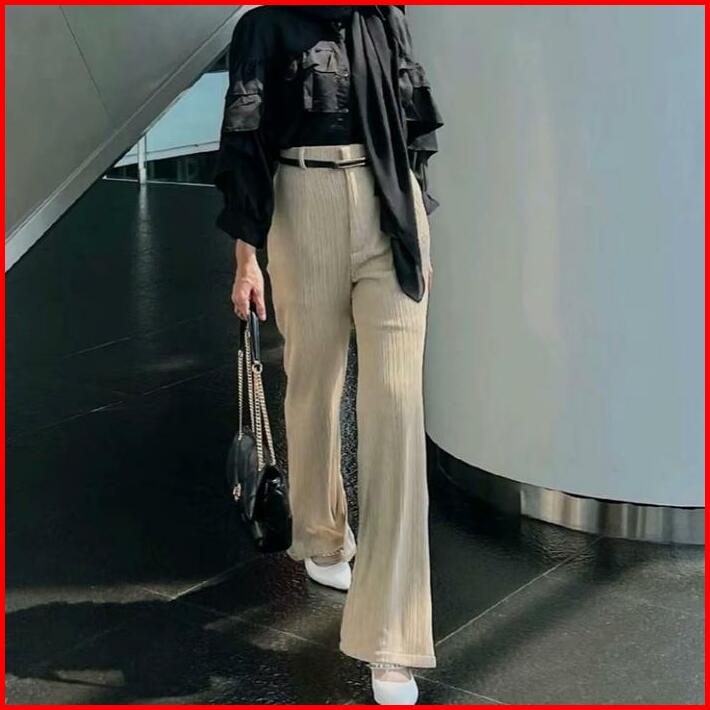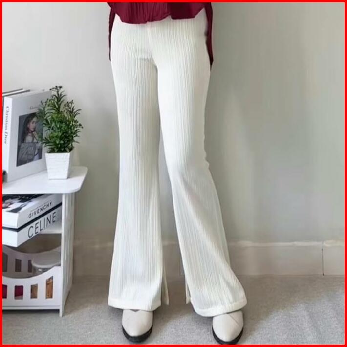 Genmastore-celana Cutbray Knit Wanita Higwaist Knit Premium Cutbray Wanita Nyaman Panjang Motif