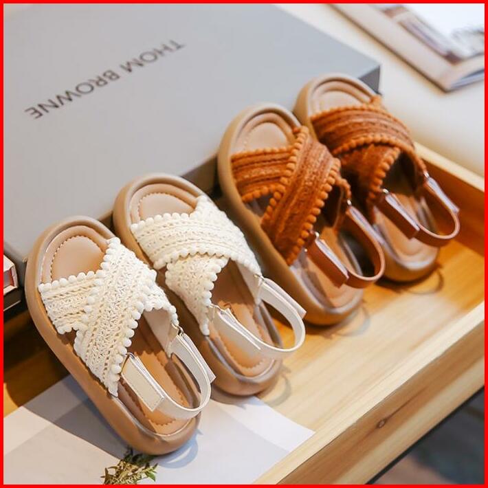 2 Cara Pakai Sandal Slip-on Bayi Perempuan Manis Warna Polos Sandal Renda Sol Lembut Sepatu Anak Nyaman 2-18 Tahun