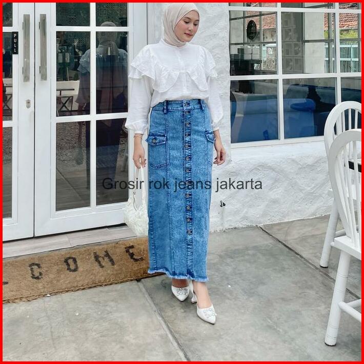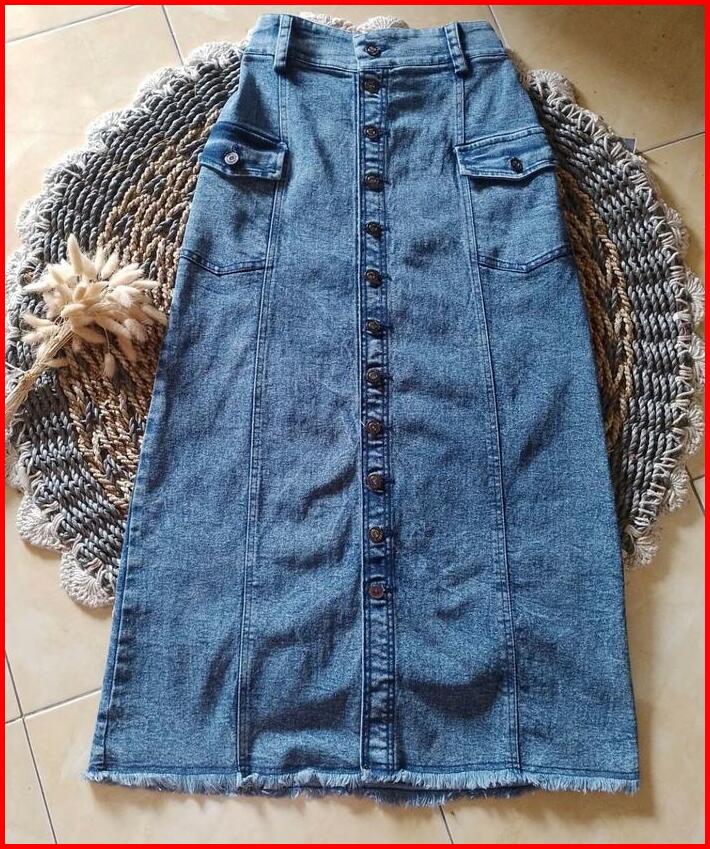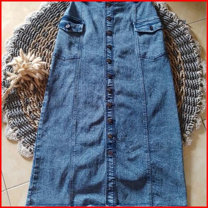 Rok Jeans Cargo Rok Jeans Streech Skinny Rok Jeans Panjang Wanita Rok Span Jeans Melar Stretch Karet Denim