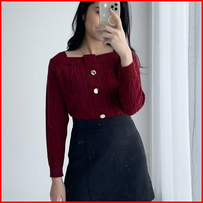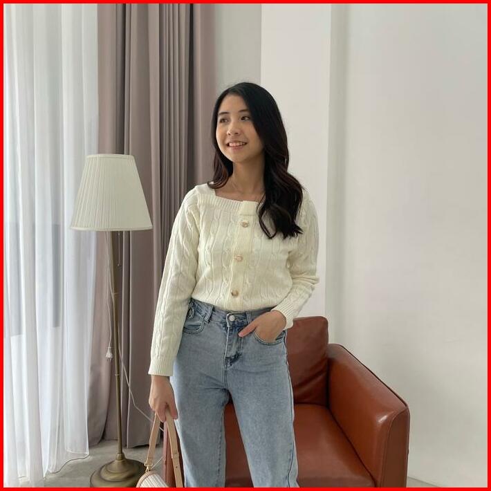 Needaknit Mia Top Atasan Baju Wanita Rajut Knit Sweater Cardigan Tebal Kerah Outer Tangan Panjang Lembut Kardigan Basic