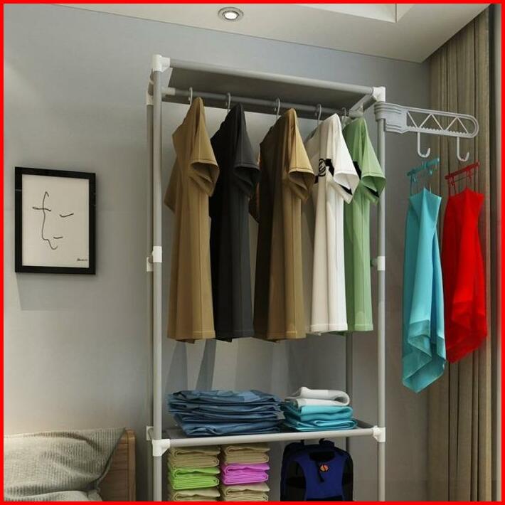 Rak Gantung Baju Berdiri Besi Square Colthrack Stand Hanger Rak Penyimpan Rak Susun Hanger Rak Multifungsi Rak Gantungan