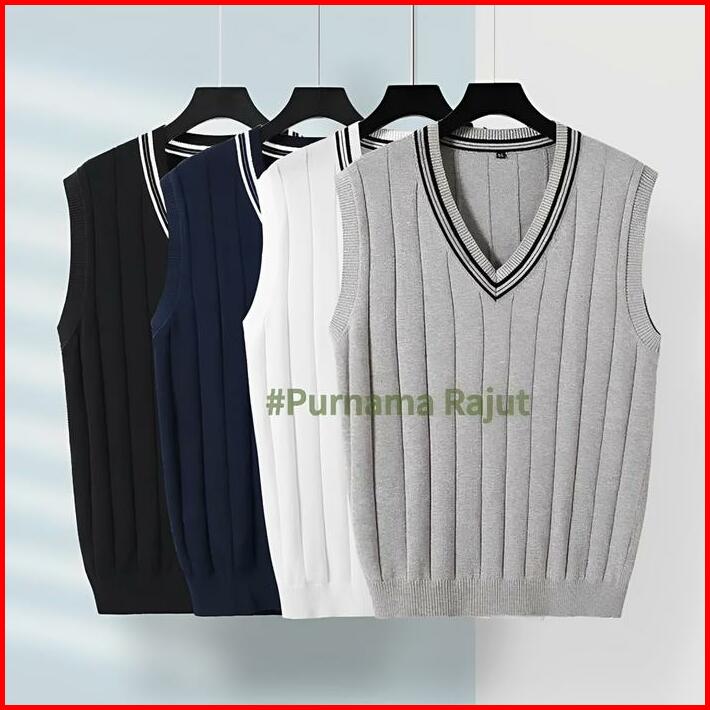 Gratis Bordir Nama Rompi Rajut Atasan Pria Wanita Premium Baju Rajut Outerwear Hitam Sweater Casual Keren Tebal