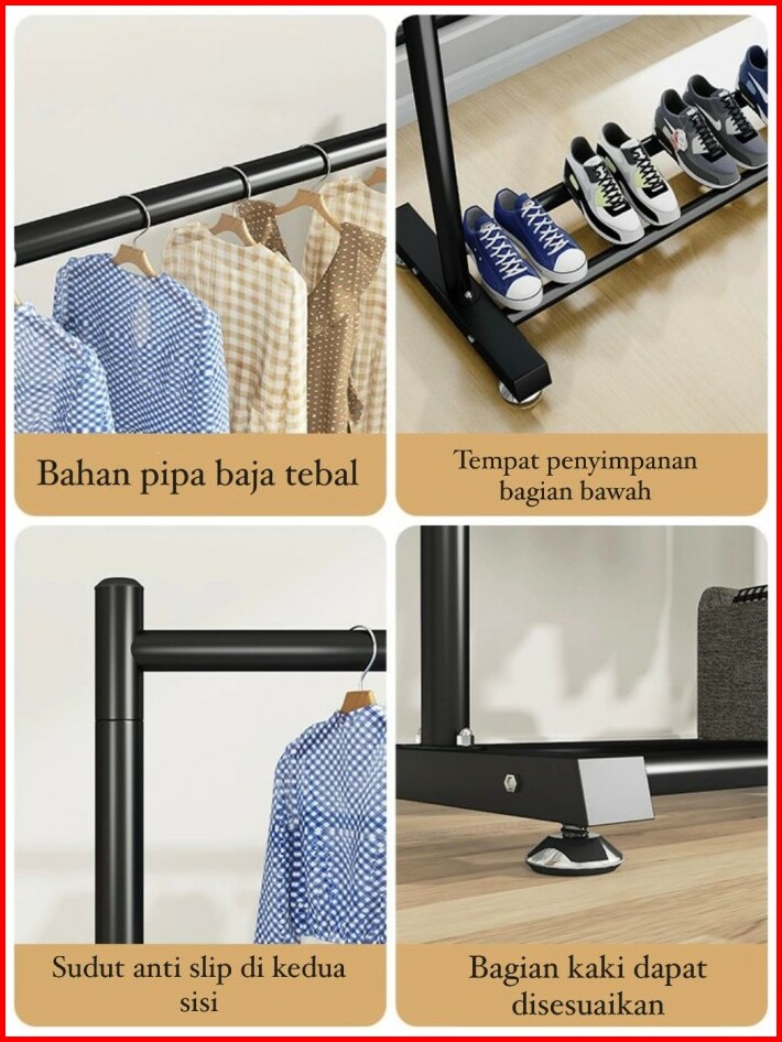 Gantungan Baju Besi Double Rak Baju Stand Hanger Gawang Jemuran Baju Jemuran Pakaian Hanger Baju Besi