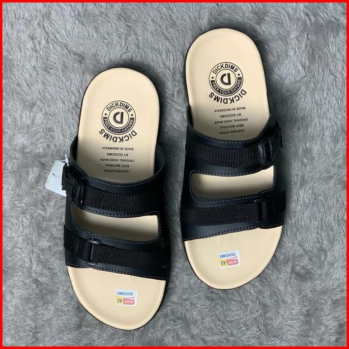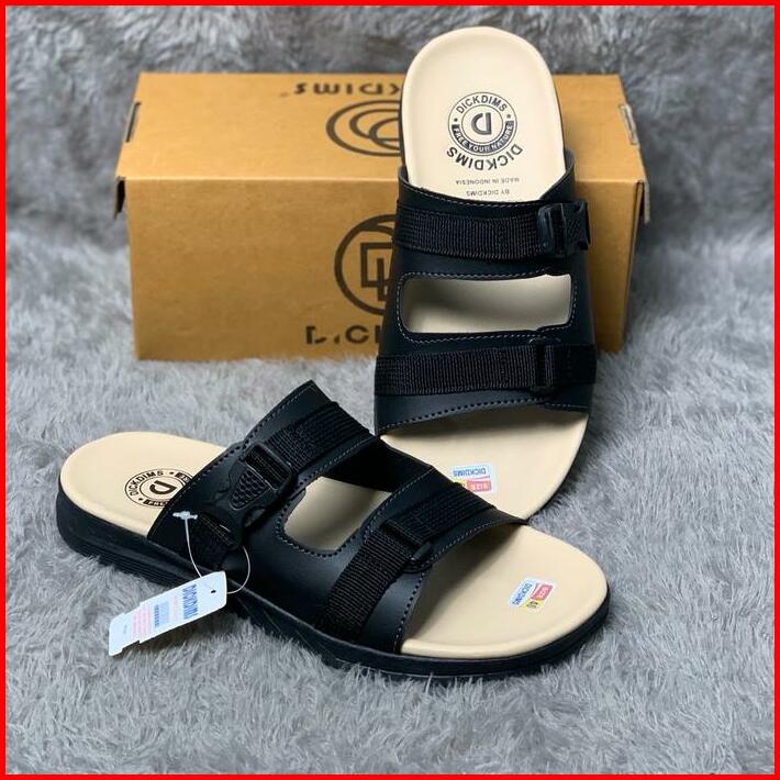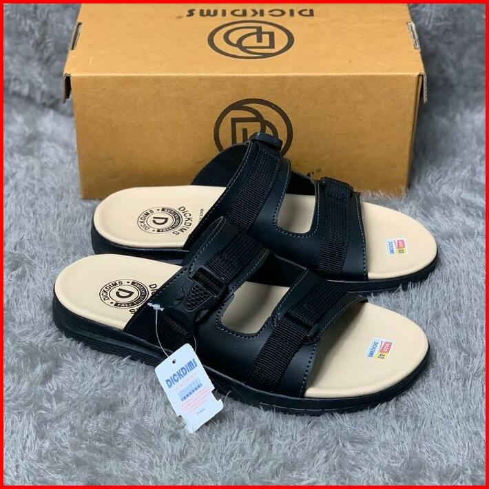 Sandal Slop Dickdims Casual Pria Distro Terbaru Ban-22-krem Hitam