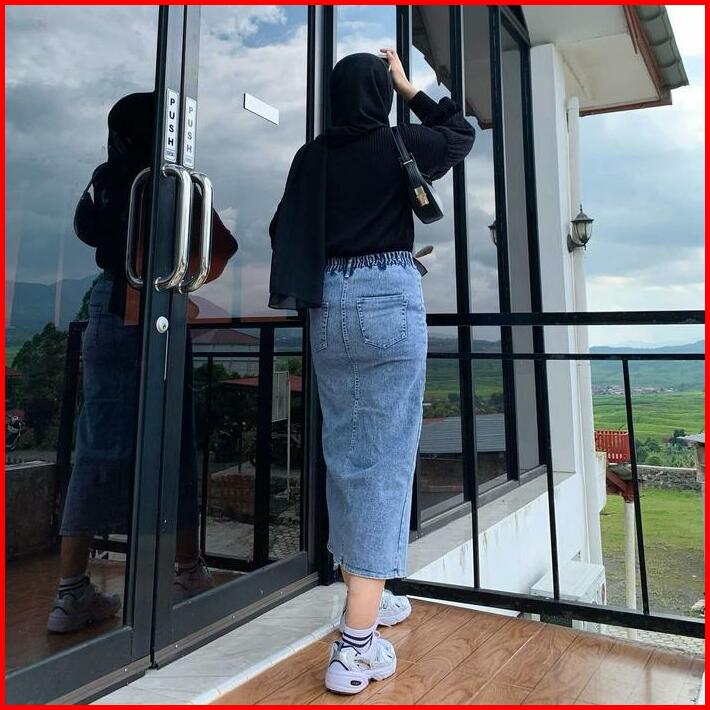 Z-two Rok Jeans 7 9 Belah Tengah Depan Wanita Dewasa Casual Bunny Skirt Panjang