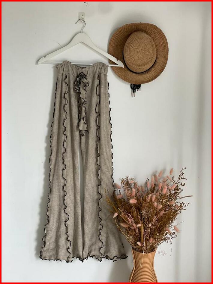 Long Pants Cutbray List Curly Saga Jade Green S M L Xl 40-60 60-80