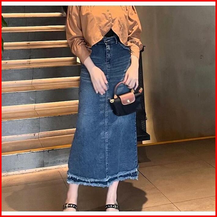 Valen Rok Rawis Jeans Premium Skirt Rok Span Jeans Kancing