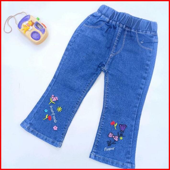 Celana Jeans Import Cutbray Bordir Anak Cewek Usia 1-5 Tahun Celana Jeans Anak Perempuan Kids Fashion Motif Bayi