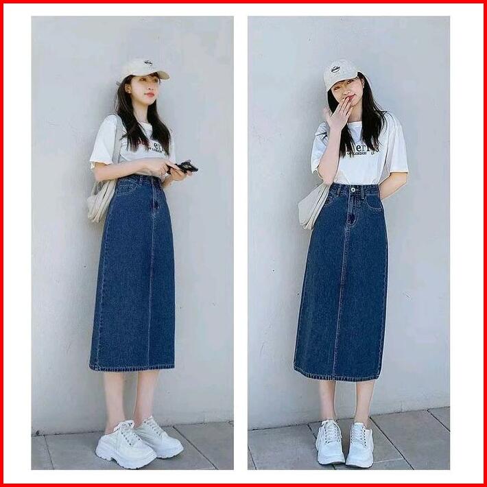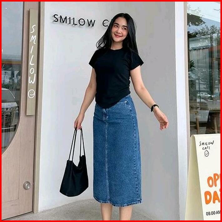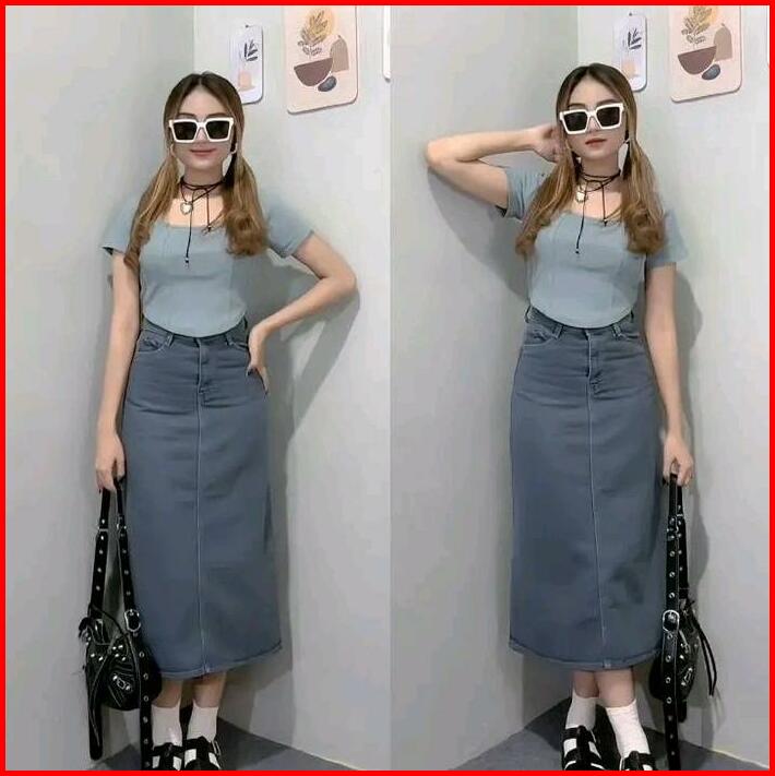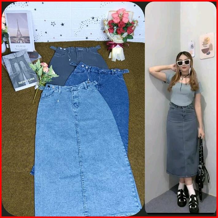Rok Jeans 7 9 Wanita Cewek Setrit Rok Theana Skirt Belangkang Karet Rok Span Belah Dibelakang Terbaru Yang Bisa Disesuai