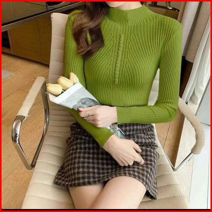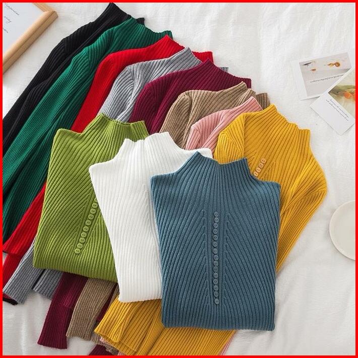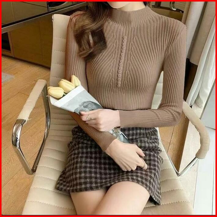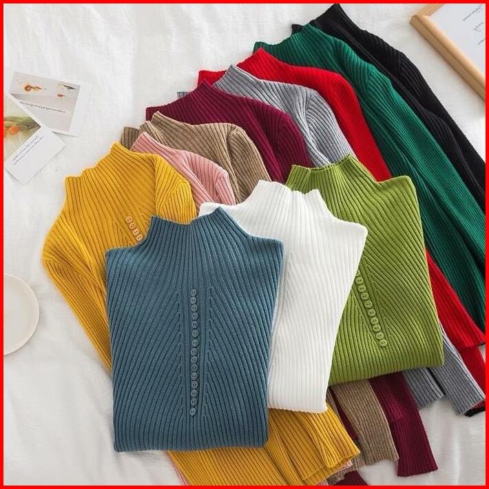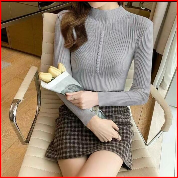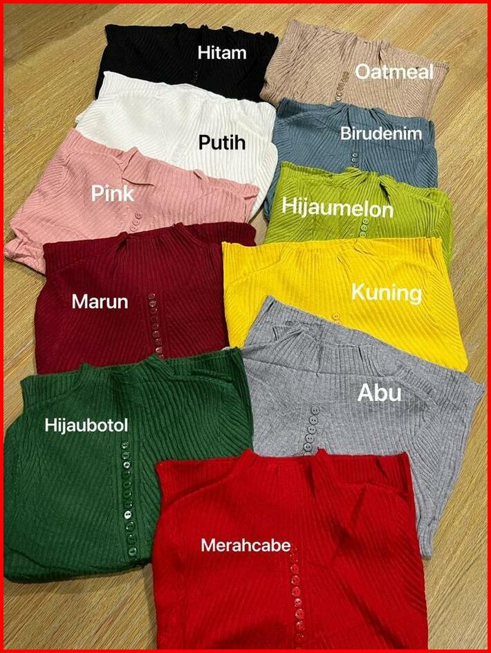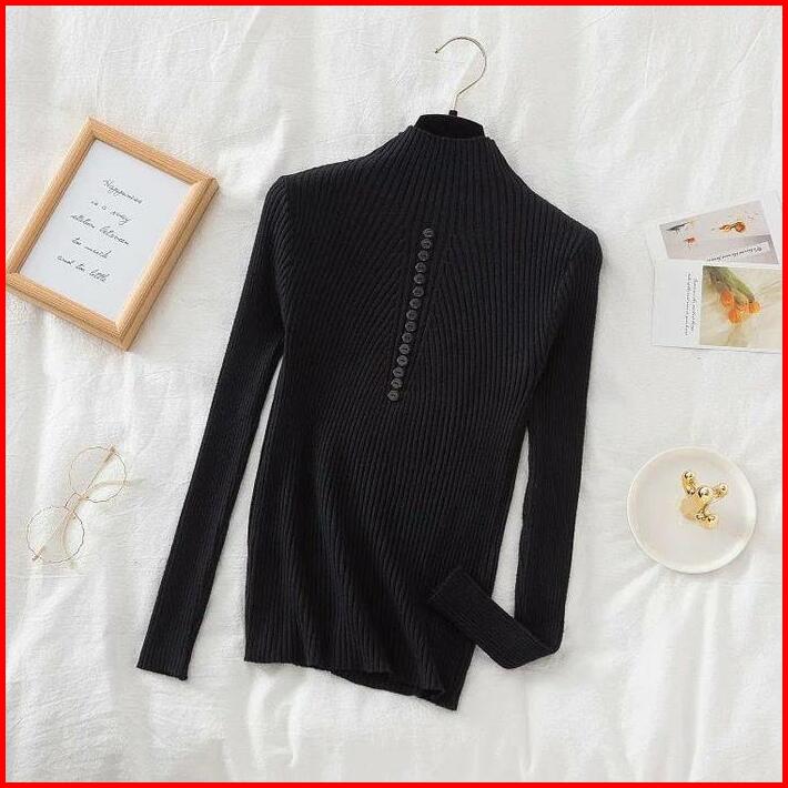 Markas Fashion99 Atasan Inner Wanita Baju Rajut Button List Knit 118 Tangan Panjang Lembut Knitwear Hitam Top Pendek