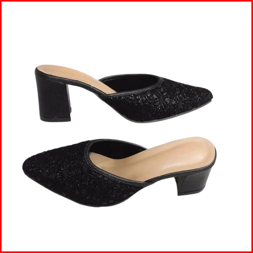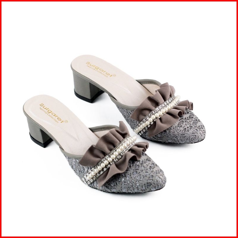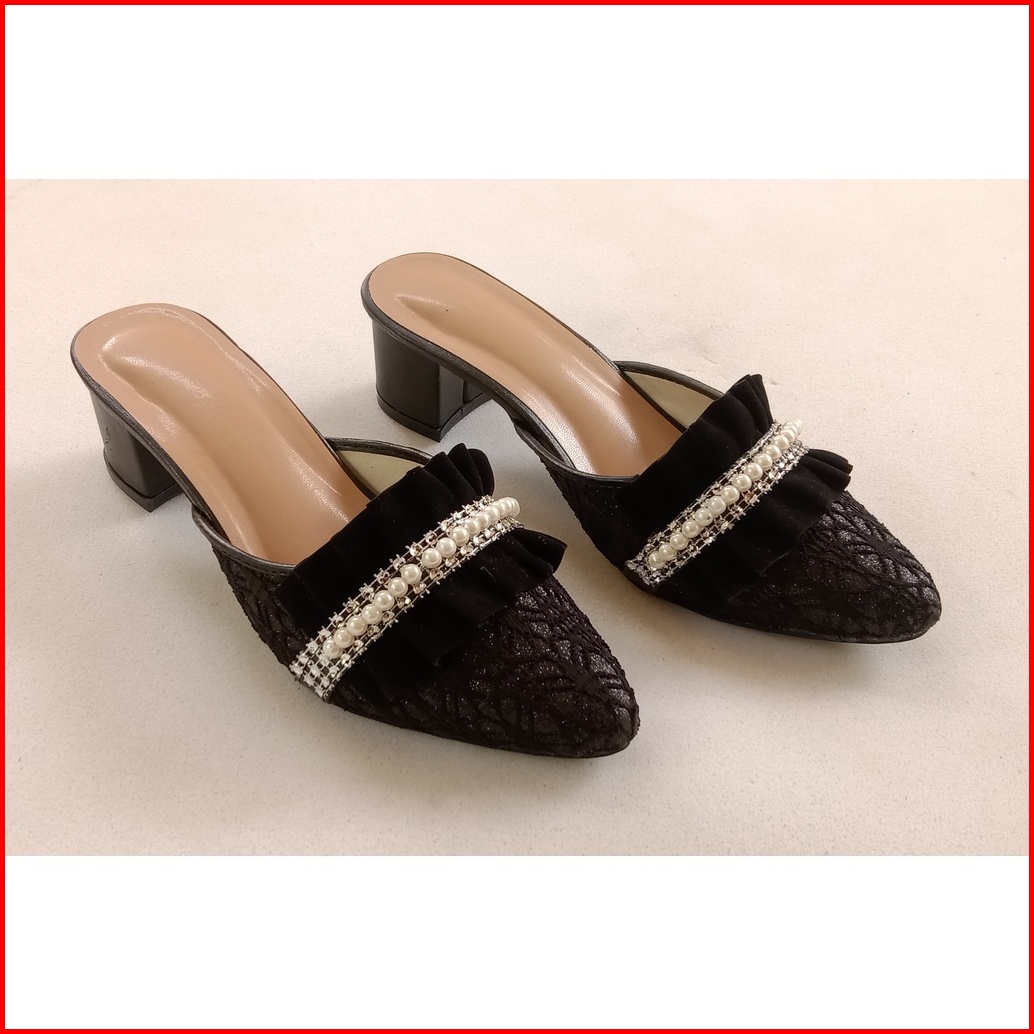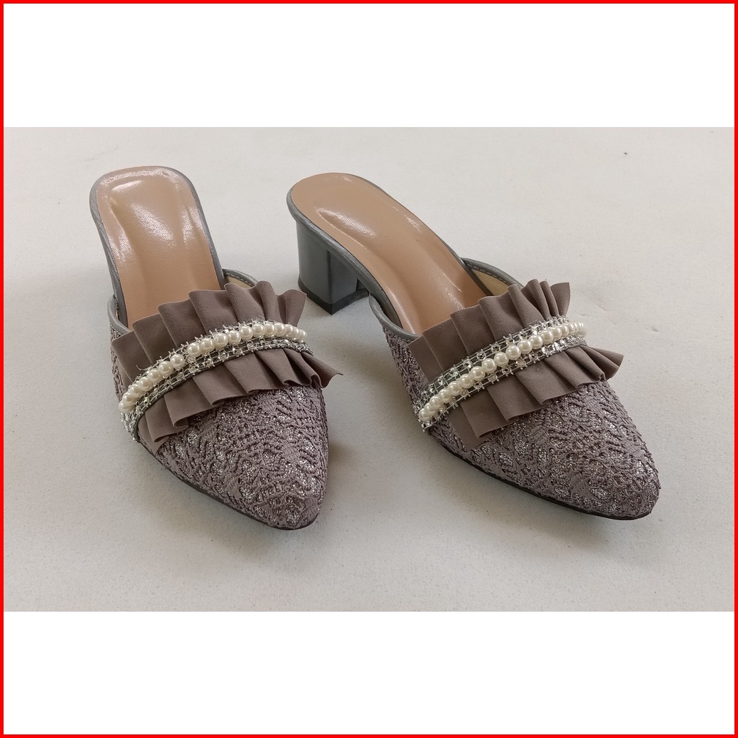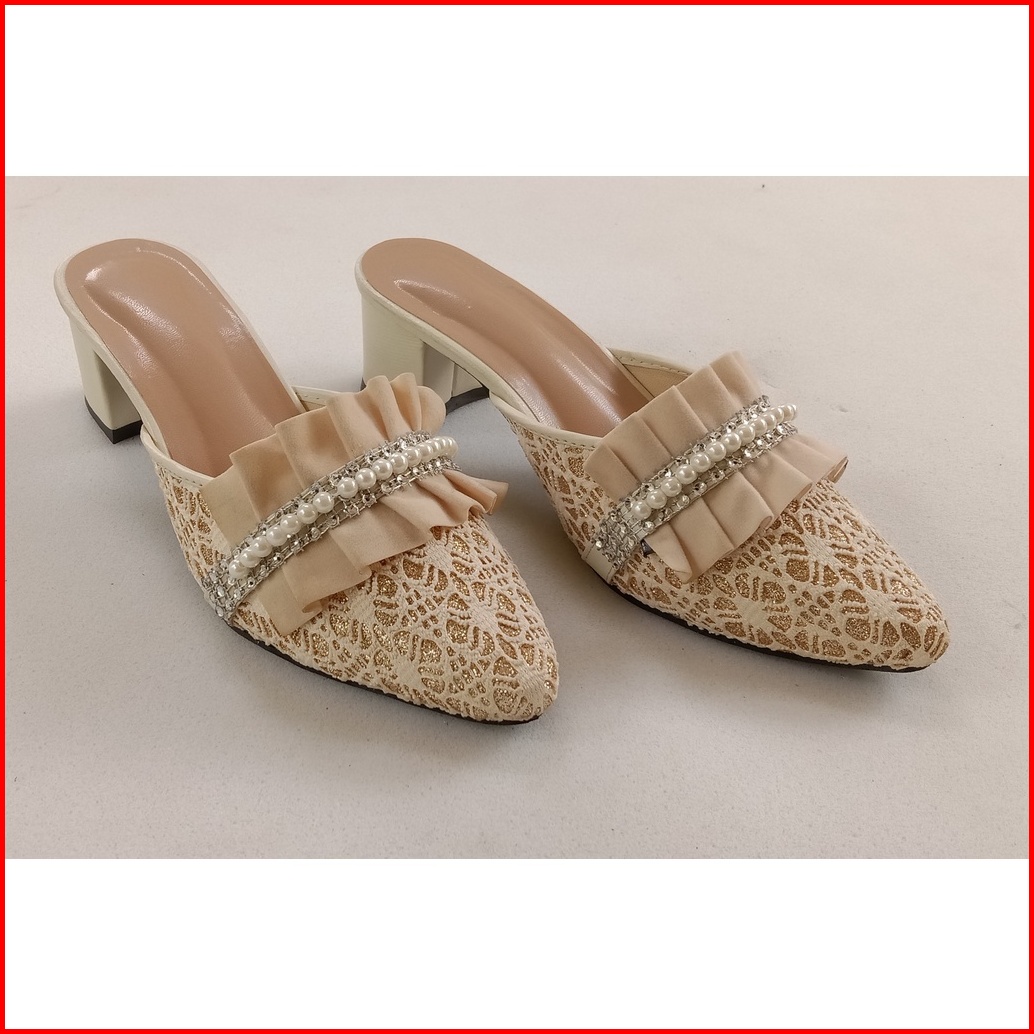 Sepatu Pesta Wanita Brukat Mutiara Hak 5cm Mewah