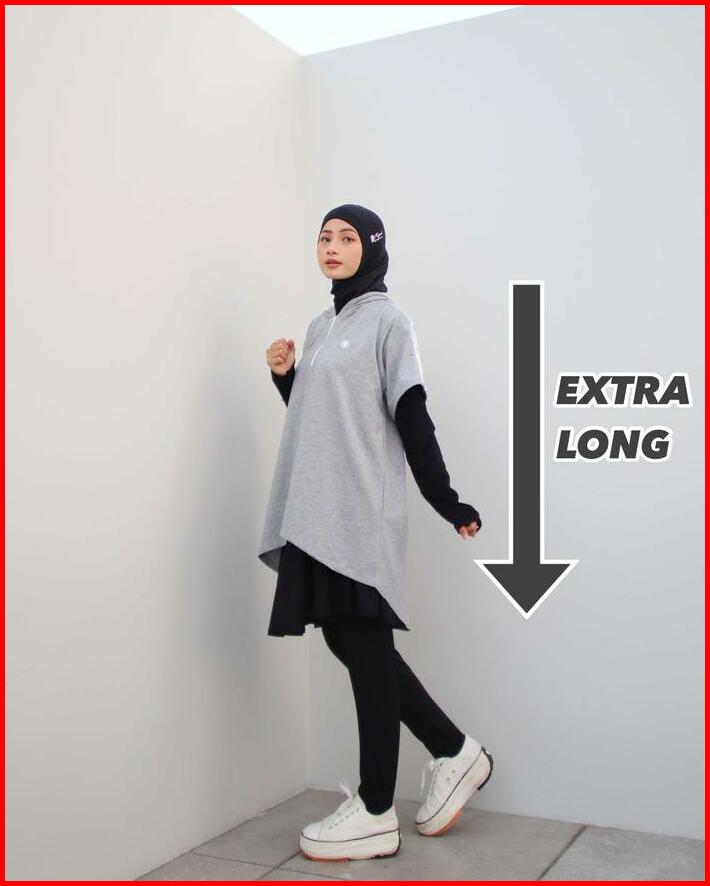 Asymmetric Hoodie Long Sport Wanita Muslim Jumper Lari Bersepeda Yoga 9-0291