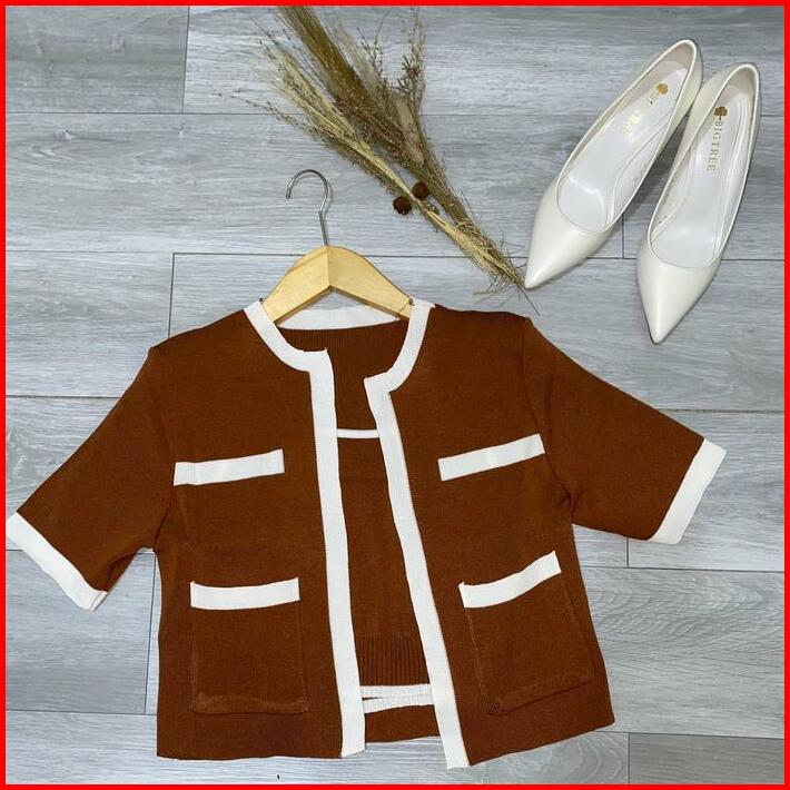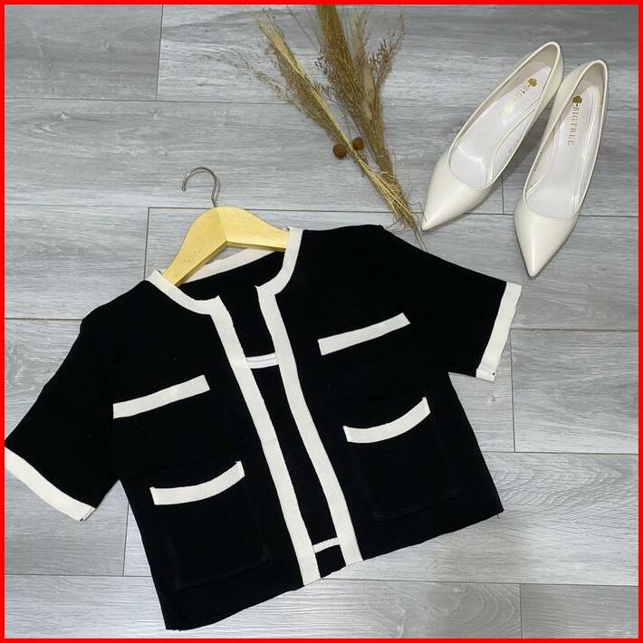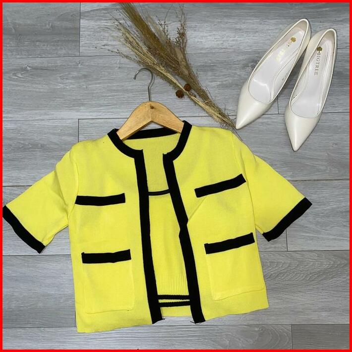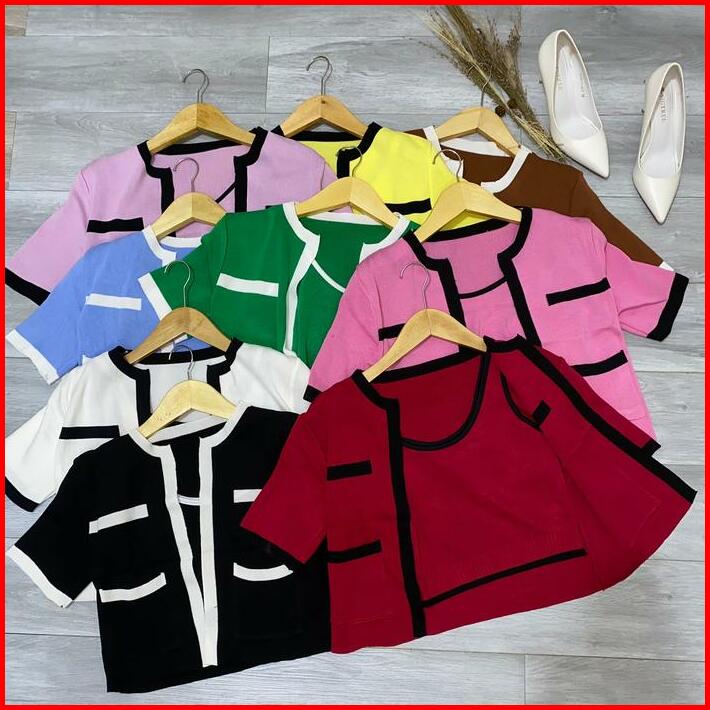 Herchoice H006 Baju Top Set Atasan Long Square Atasan Kerah Rajut N Kaos Rajut Lengan Pendek Baju Atasan Wanita Sweater