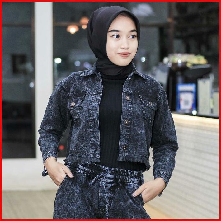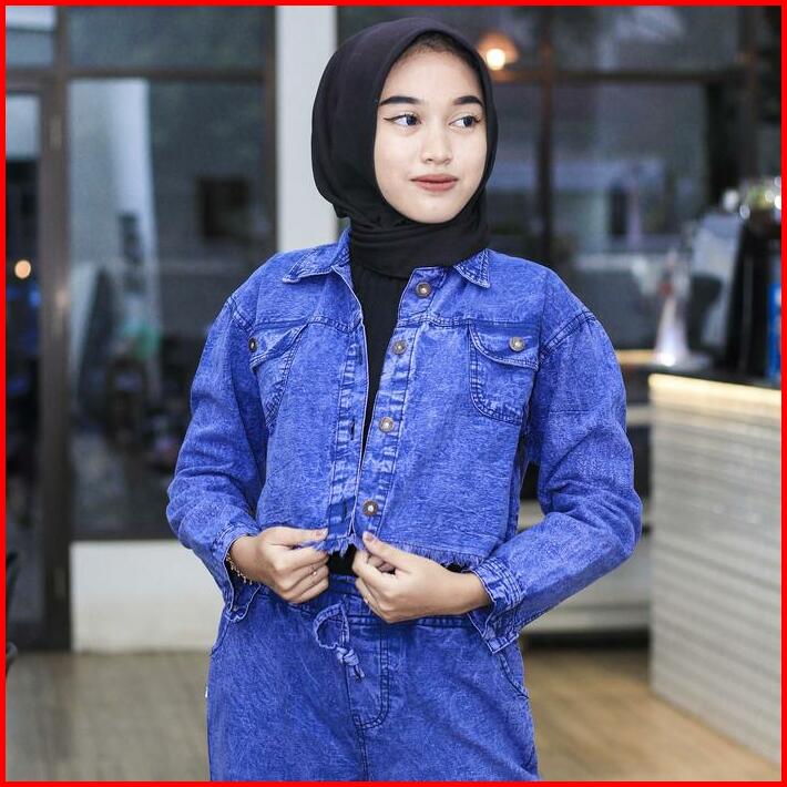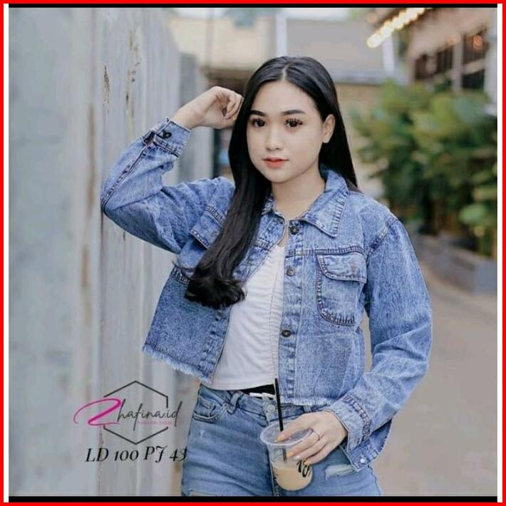 Jaket Crop Denim Jeans Wanita Rawis Jaket Jins Lepis Cewe Cewek