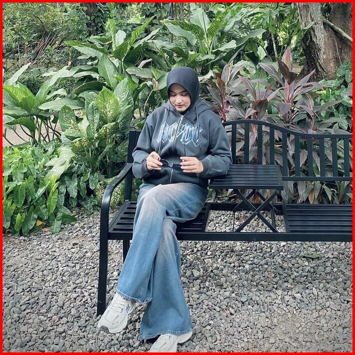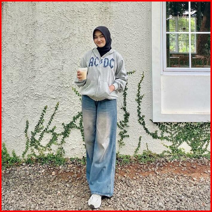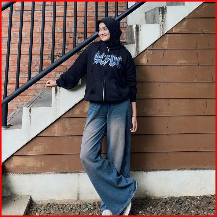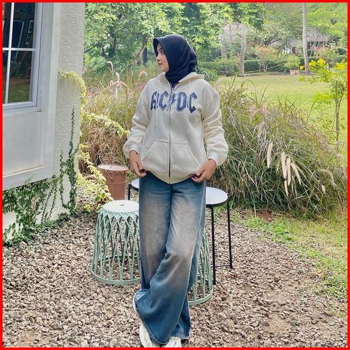 Zipper Boxy Acdc Oversize Cowo Cewe Bisa Pakai Lengan Balon