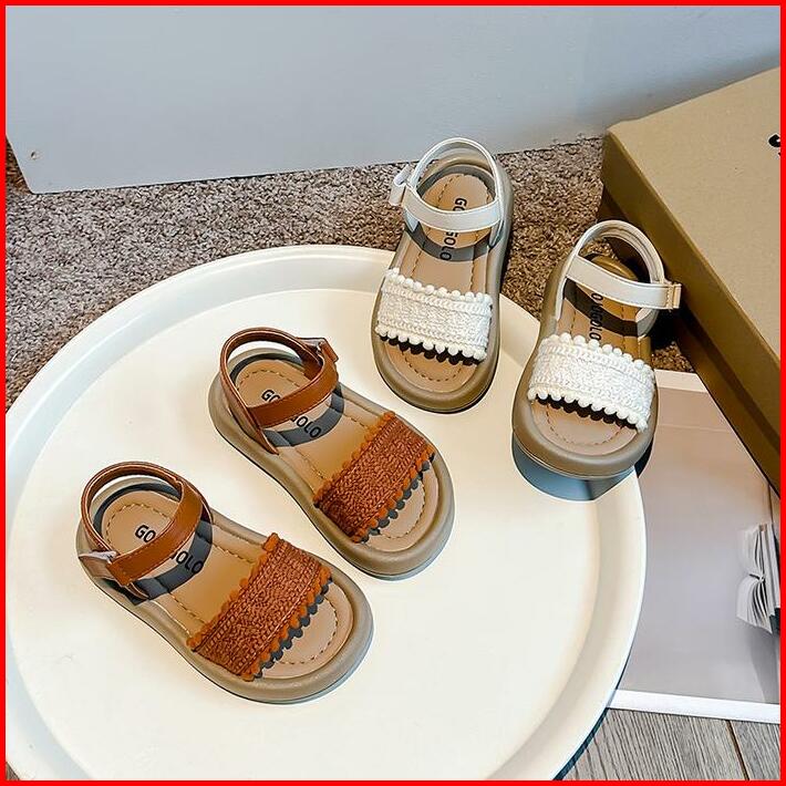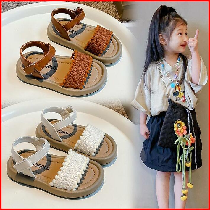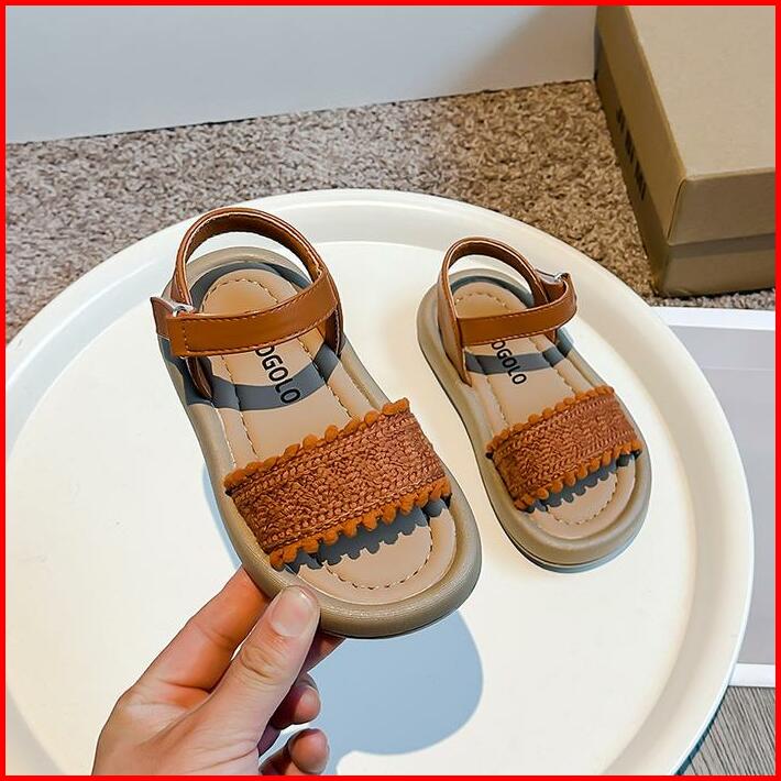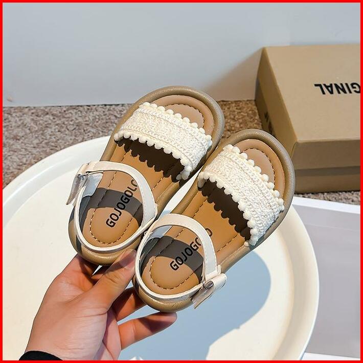 Sandal Ujung Terbuka Musim Panas Modis Untuk Bayi Perempuan Sepatu Anak Nyaman Sol Lembut Bola Rambut Warna Polos Usia 2