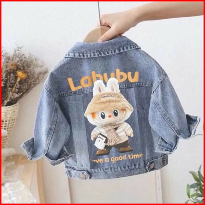 Jaket Labubu Viral Anak Umur 1-12 Tahun Baju Coklat Jeans Snow Biru Cewek Cowok