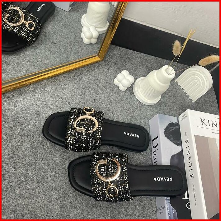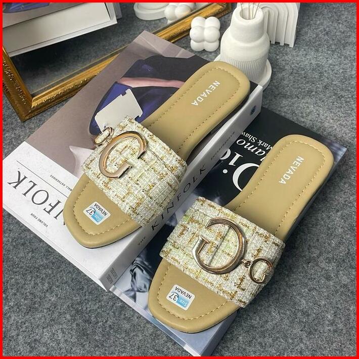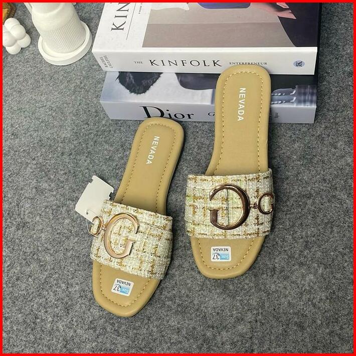 Sandal Wanita Slop Rajut Motif G Elegant Style Kekinian Cewek Sendal Selop Wanita Terbaru Shoes
