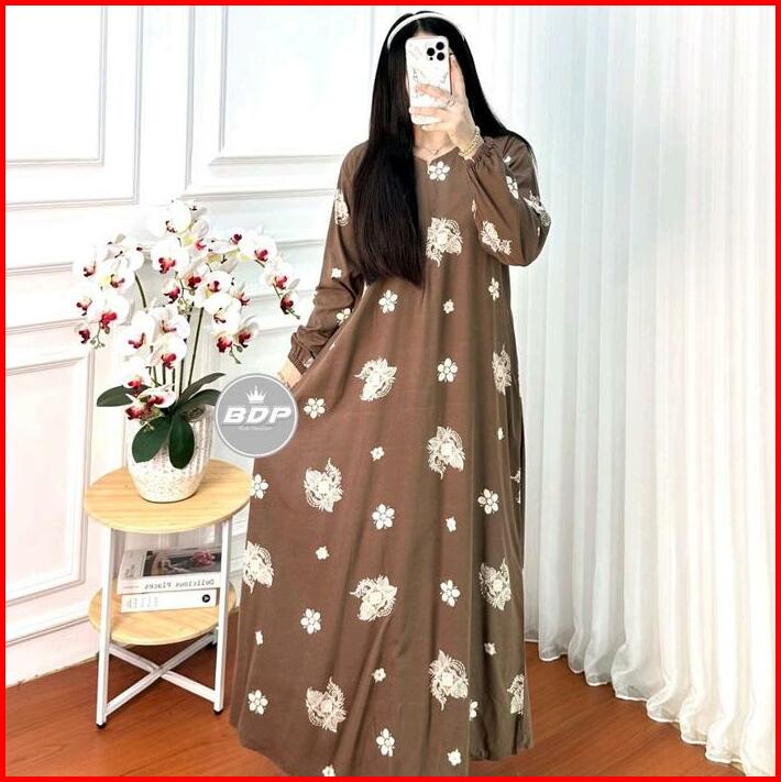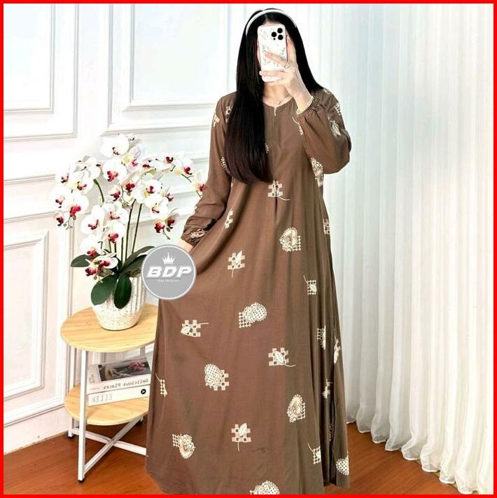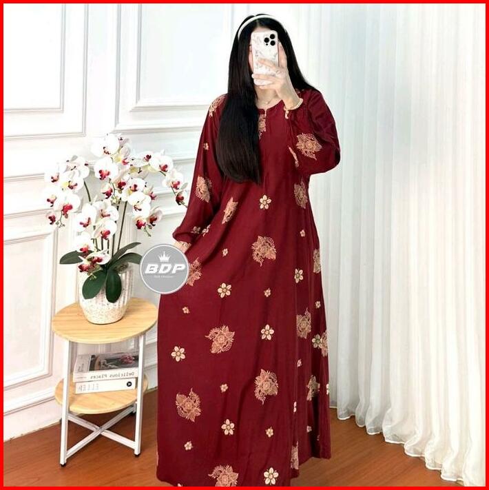 Gamis Rayon Batik Pekalongan Adem Busui Bumil Cantik Panjang Nyaman Kain