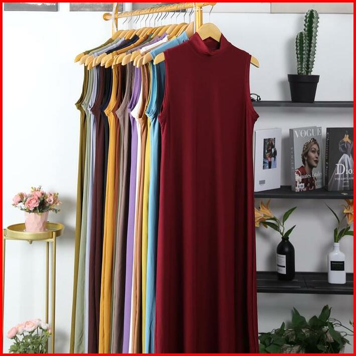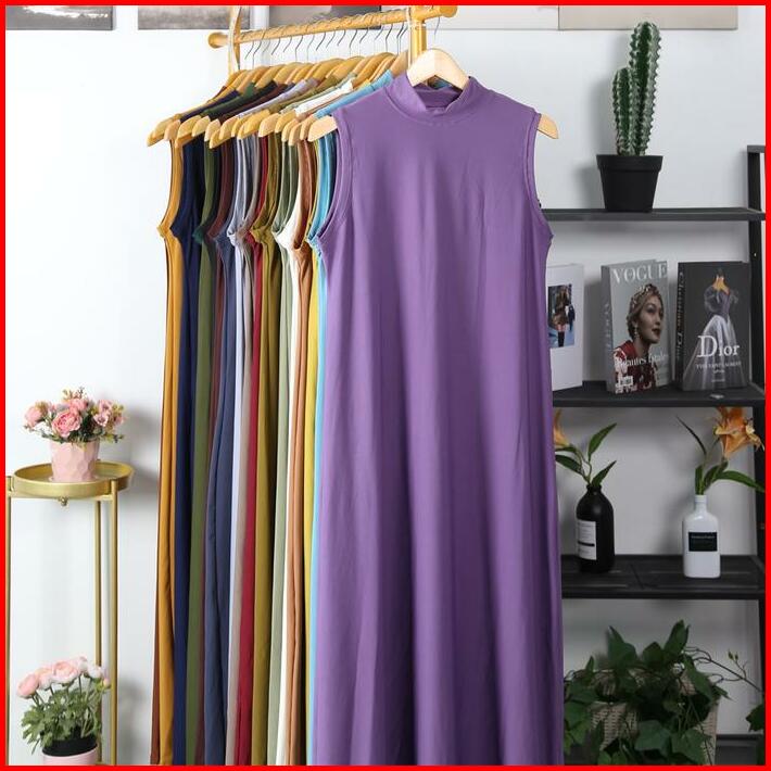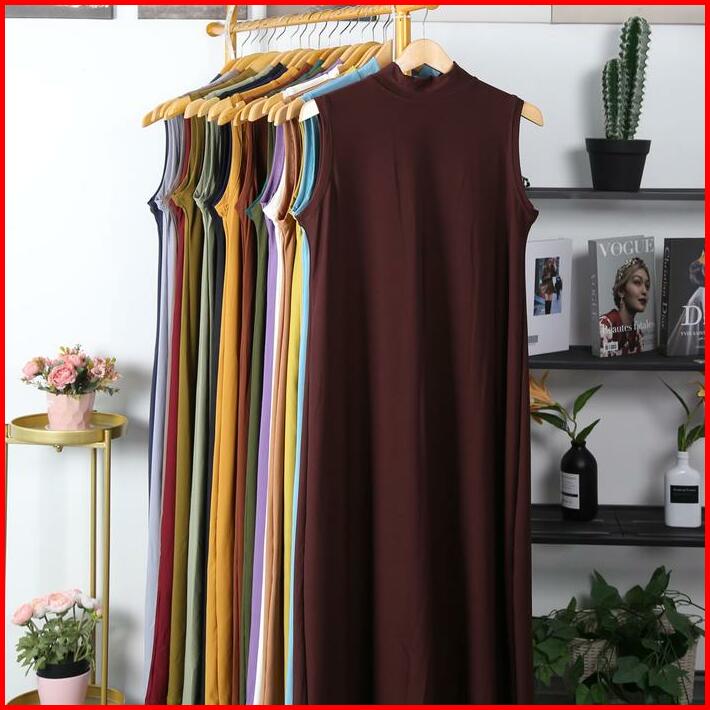 Inner Kutung Span Panjang Size M-l-xl Dress Gamis Wanita- Busana Muslim Abu Coklat