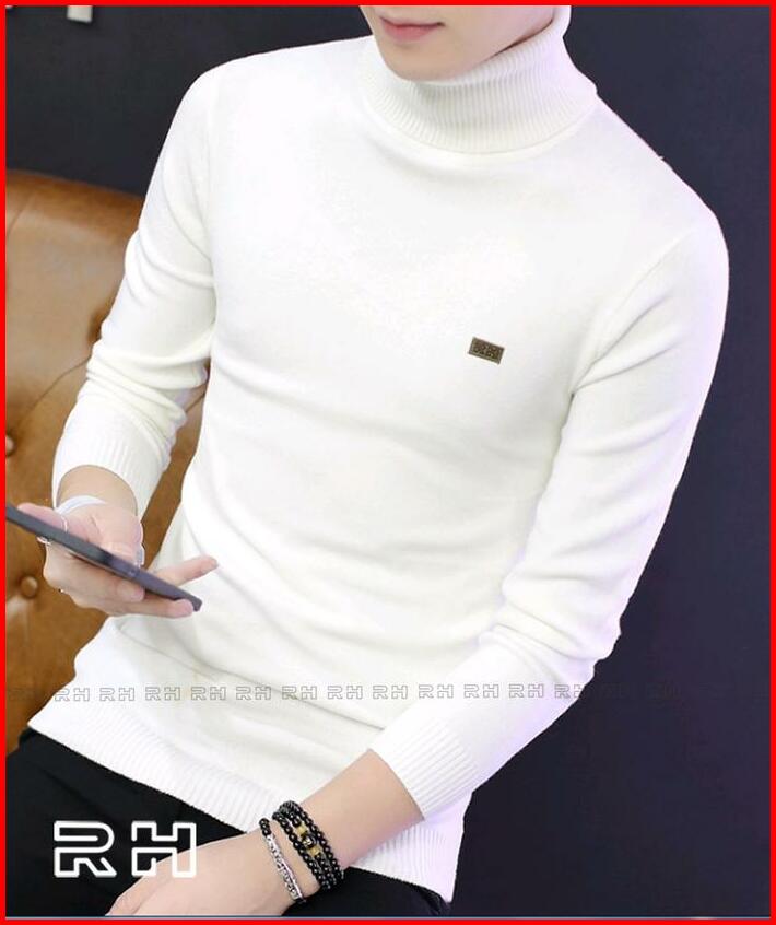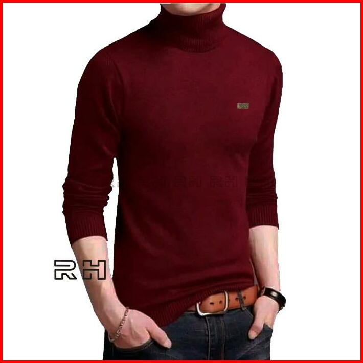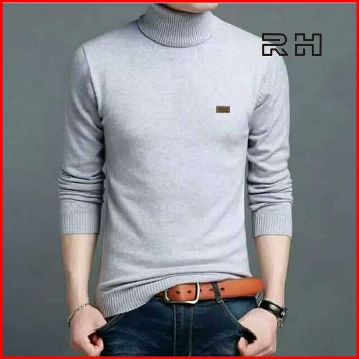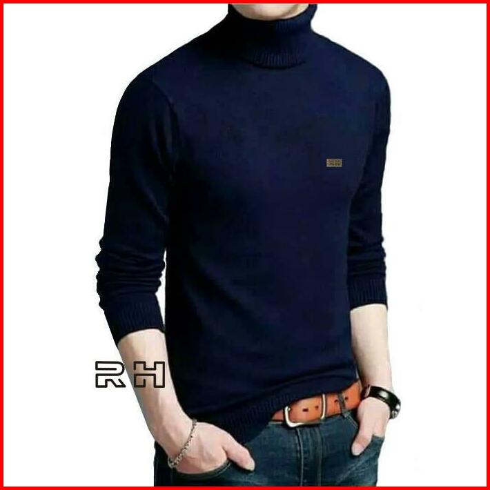 Sweater Rajut Pria Lengan Panjang Kerah Tinggi Turtleneck Koreaan Style Pria Outfit Baju Rajutan Switer Kerah Motif Knit