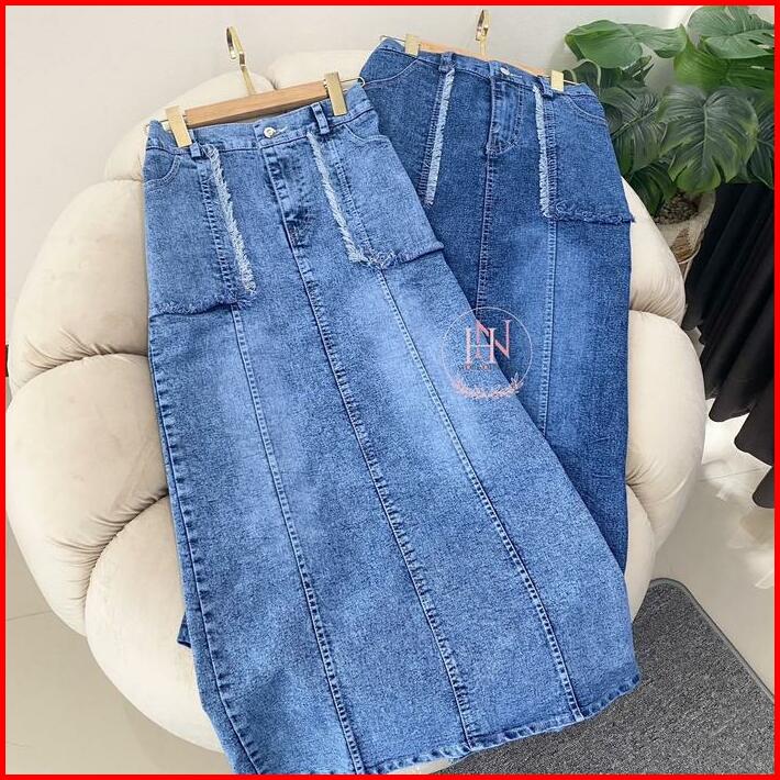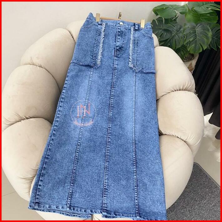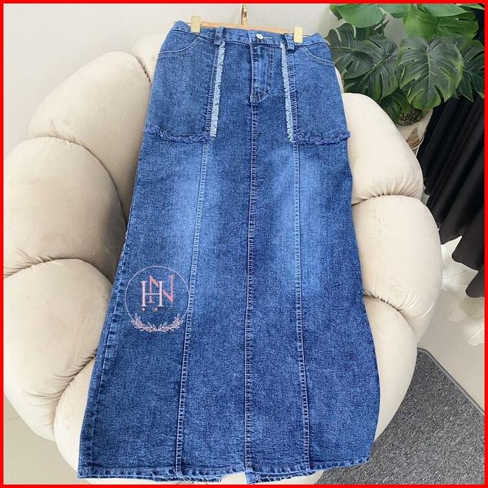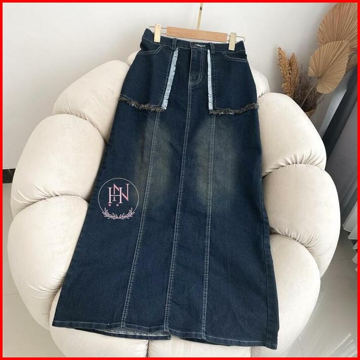 Lenka Skirt Rok Jeans Tebal Wanita Premium Rok Jeans Span Panjang