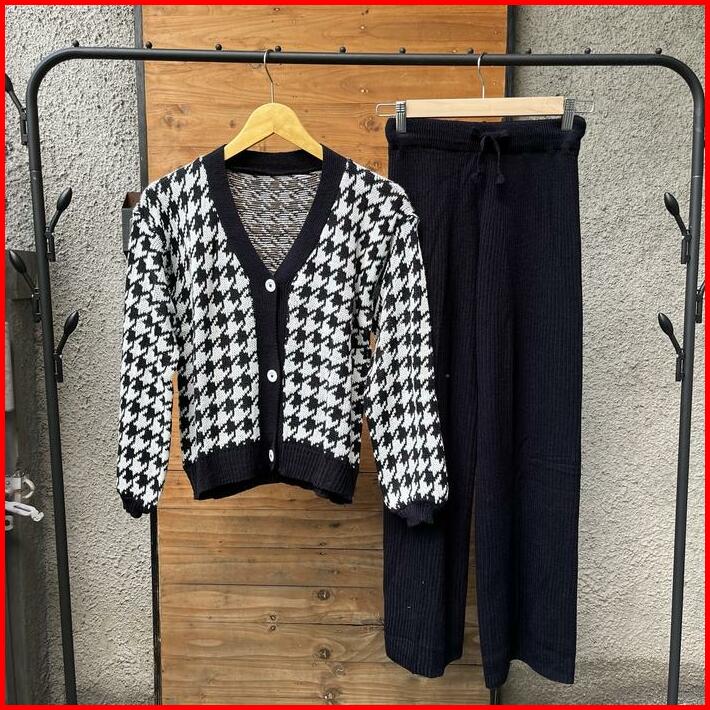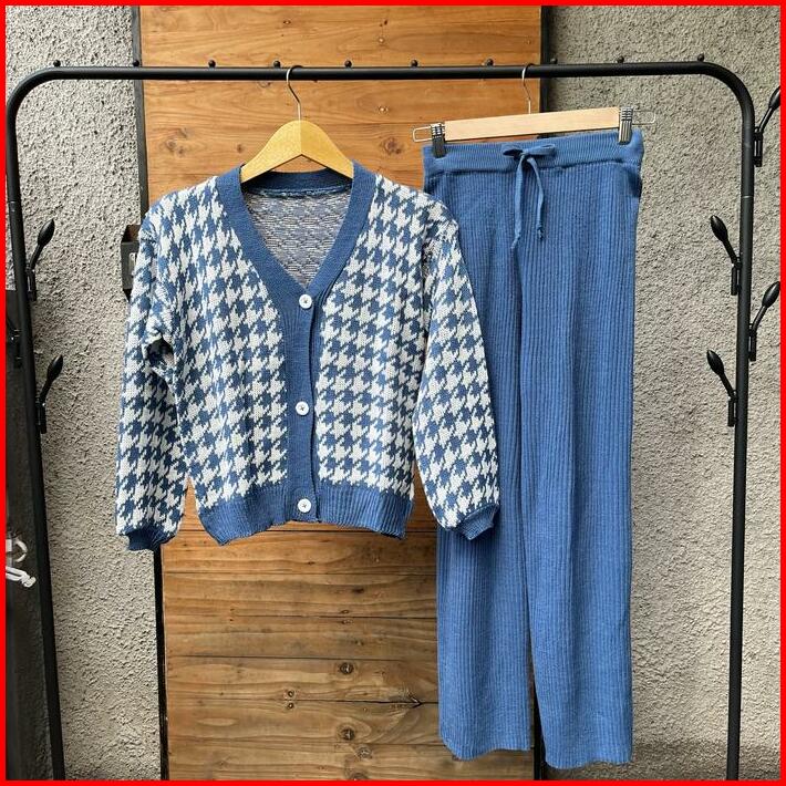 Daisy Oneset Rajut Cardigan Crop Celana Kulot Setelan Baju Cardigan
