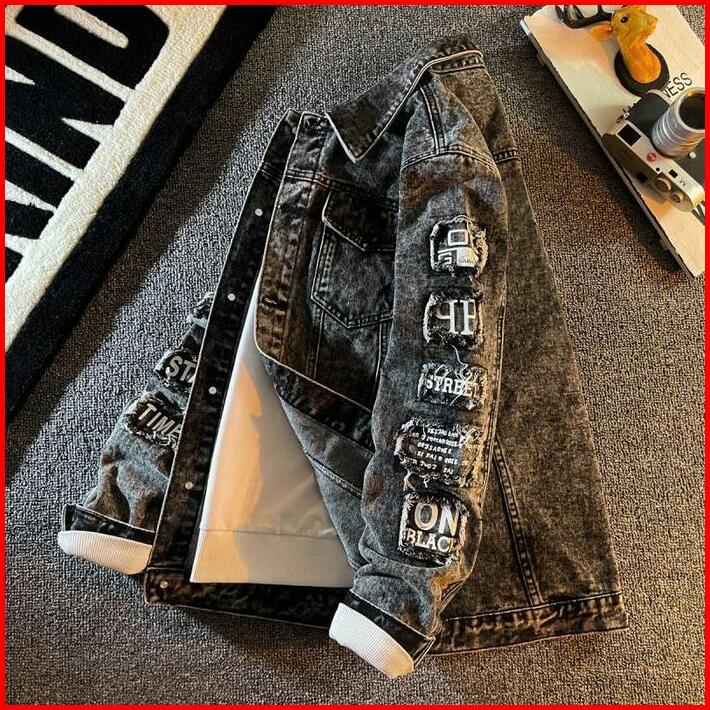 Jaket Jeans Bordiran Tangan Terbaru Varian Warna Black Wash Black Denim Nyaman Pria High Top Keren Casual Distro Cowok T