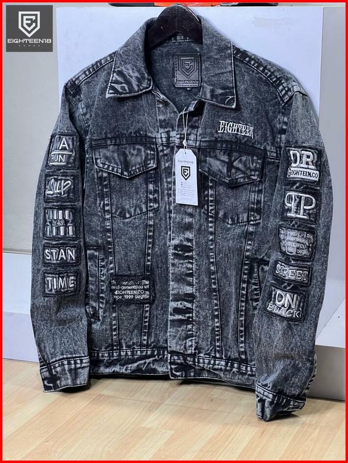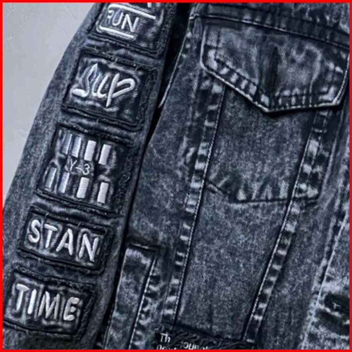Jaket Jeans Bordir Abu Pria Wanita Panjang Hitam Distro Santai Nyaman Casual Baju Tebal