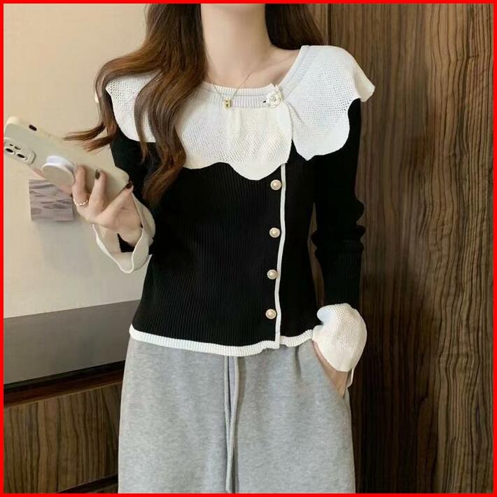 Ajw Rbd Atasan Wanita Retro Ruffle Knit Lengan Panjang Baju Wanita Slim Sexy Elegan Ruffle Knit Premium Atasan Wanita Ke