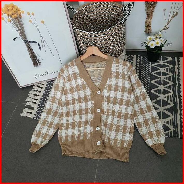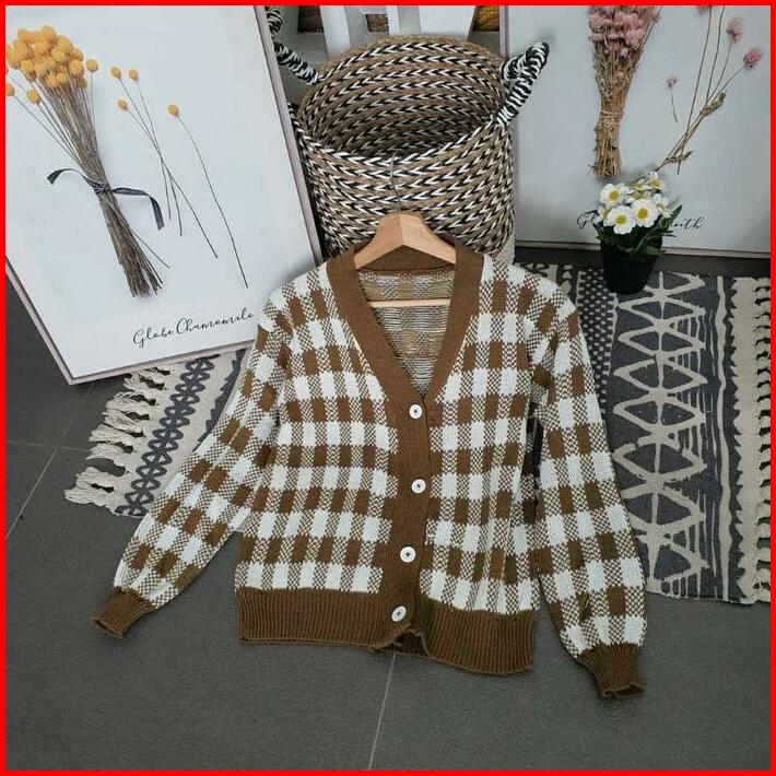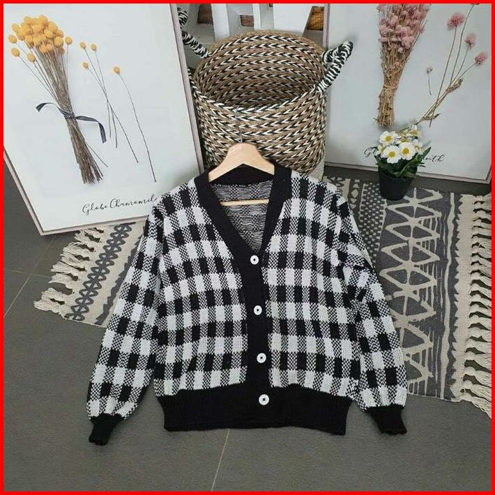 Square Cardy Cardigan Kotak-kotak Atasan Wanita Rajut Cardigan By Narts Id Knitwear Oversize Basic Outer Keren Tebal Pan