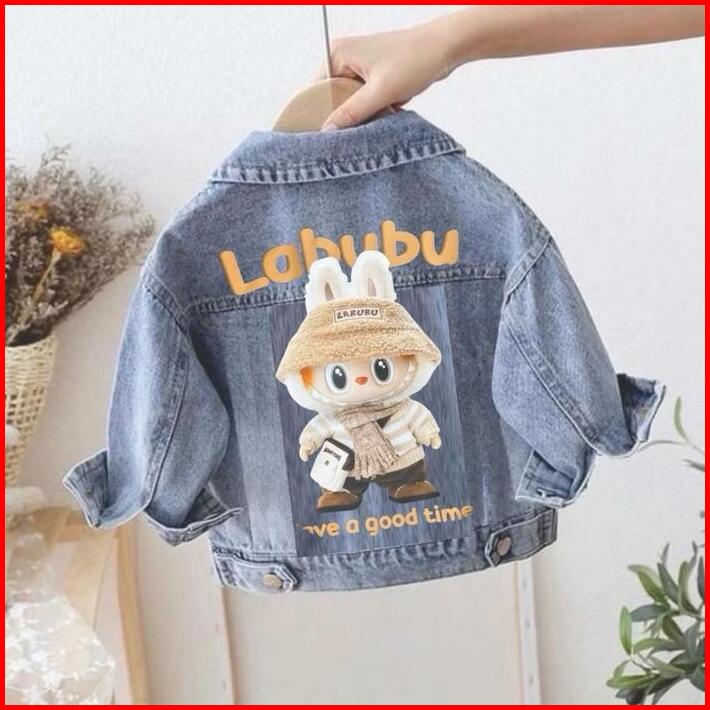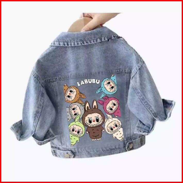 Jaket Jeans Karakter Labubu Anak Usia 1-12 Tahun Fashion Kekinian Terlaris Bayi Perempuan