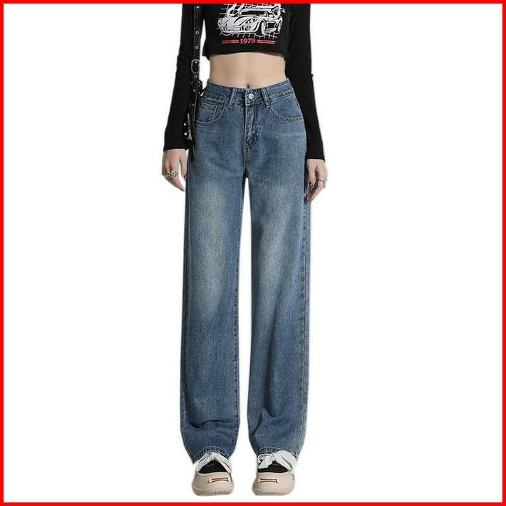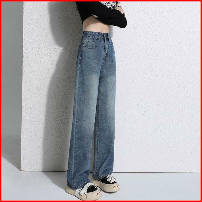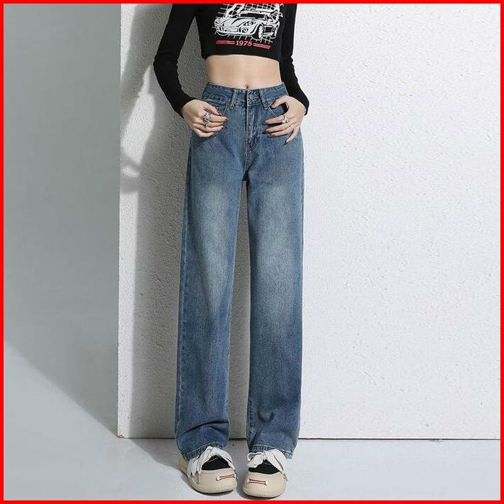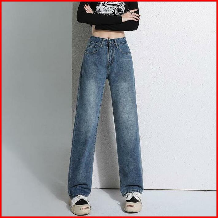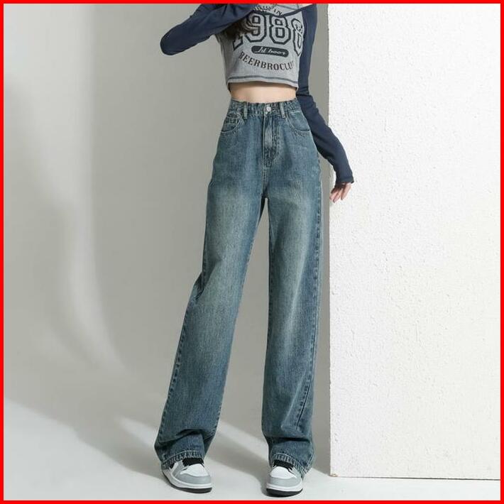Celana Jeans Panjang Wanita Kulot High Waist Premium Korea Style Denim Loose Nyaman Fit Kaki Slim Cutbray Biru Retro Cew