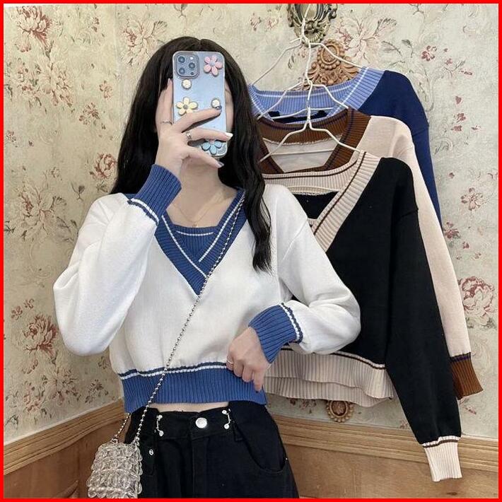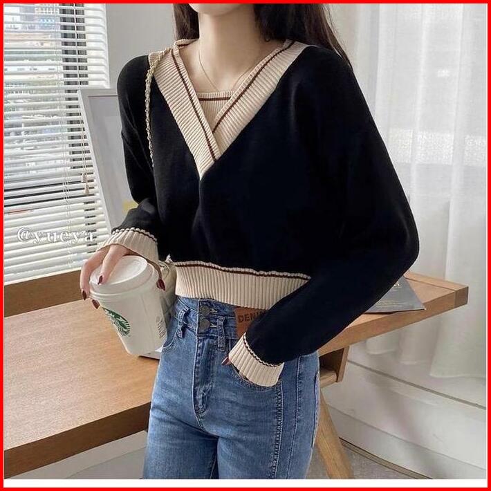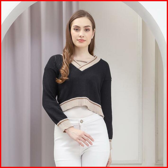 Belleza Outlet Baju Atasan Wanita Rajut Korean Style Julie Crop Knite Blouse Atasan Wanita