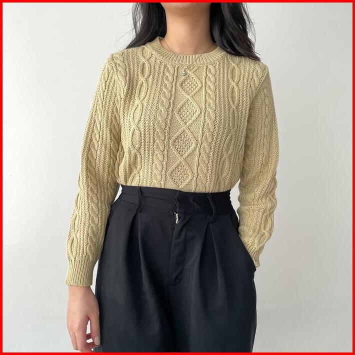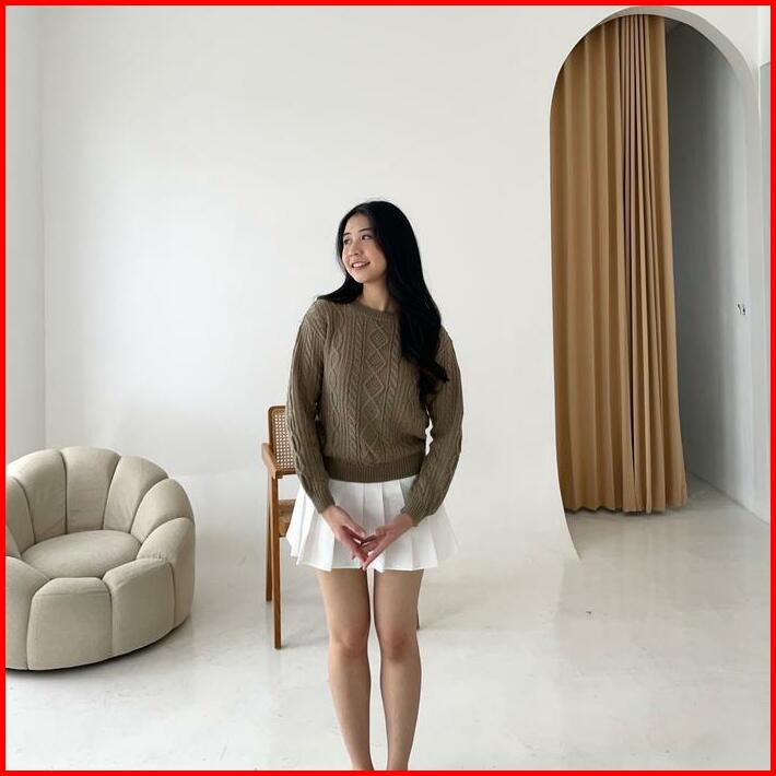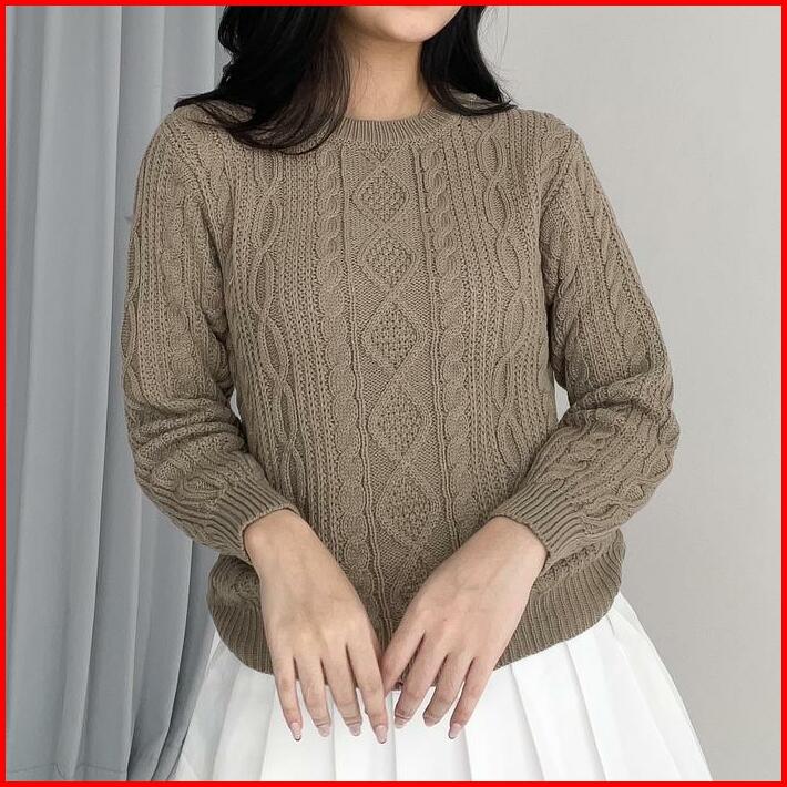 Needaknit Kim Top Atasan Wanita Baju Knit Sweater Cable Kerah Lengan Panjang Rajut Tebal Motif