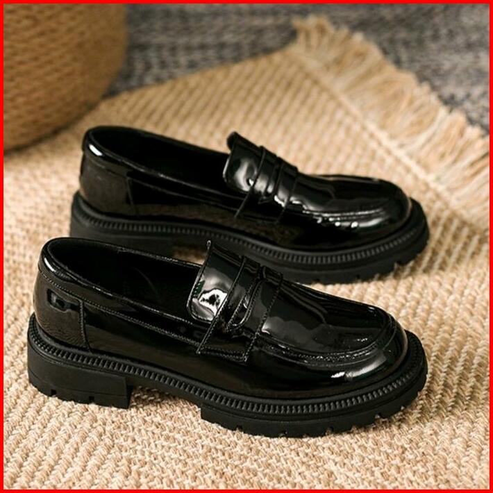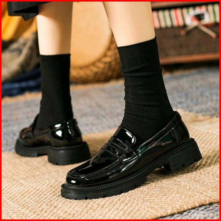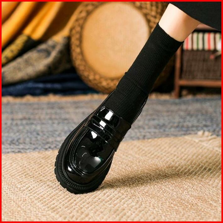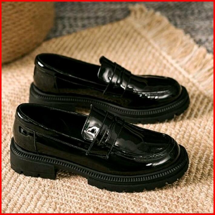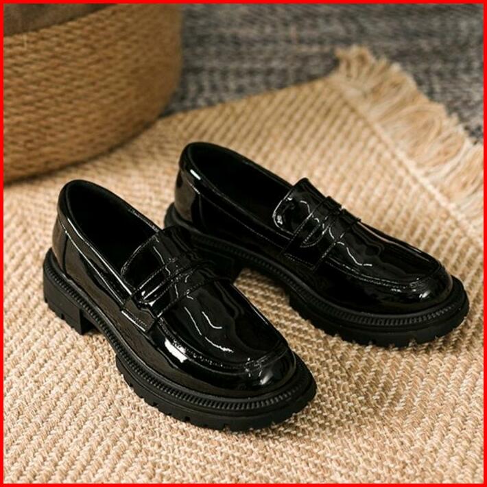 Sepatu Docmart Kulit Hitam Sekolah Remaja Perempuan Slip On Hak Datar Terbaru Flat Oxford Wanita Korean Style Fashion Im