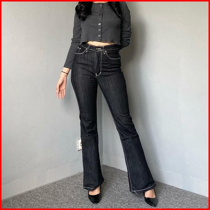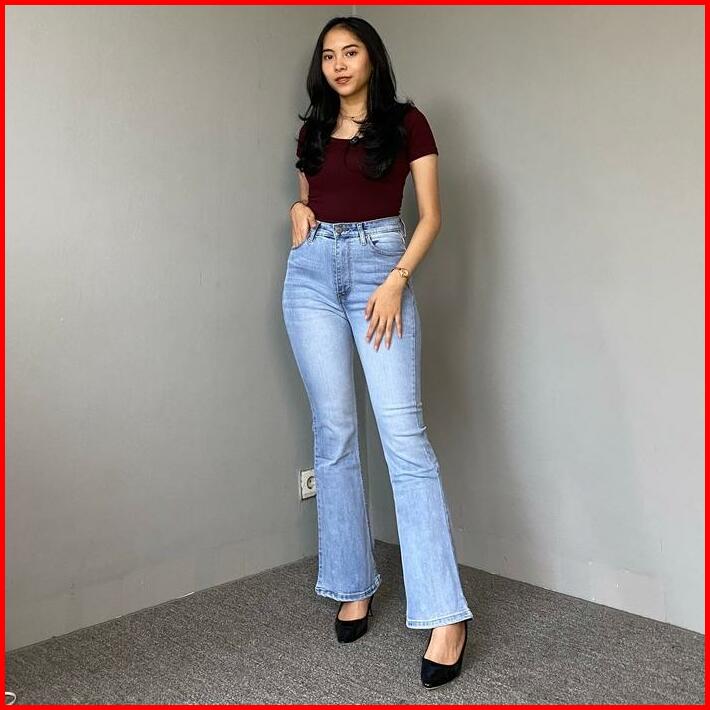 Zoe Cutbray Blue Celana Jeans Wanita Premium Quality Katun Mini Santai Slim-fitting Polos Low Waist Bunga A-line Hitam P