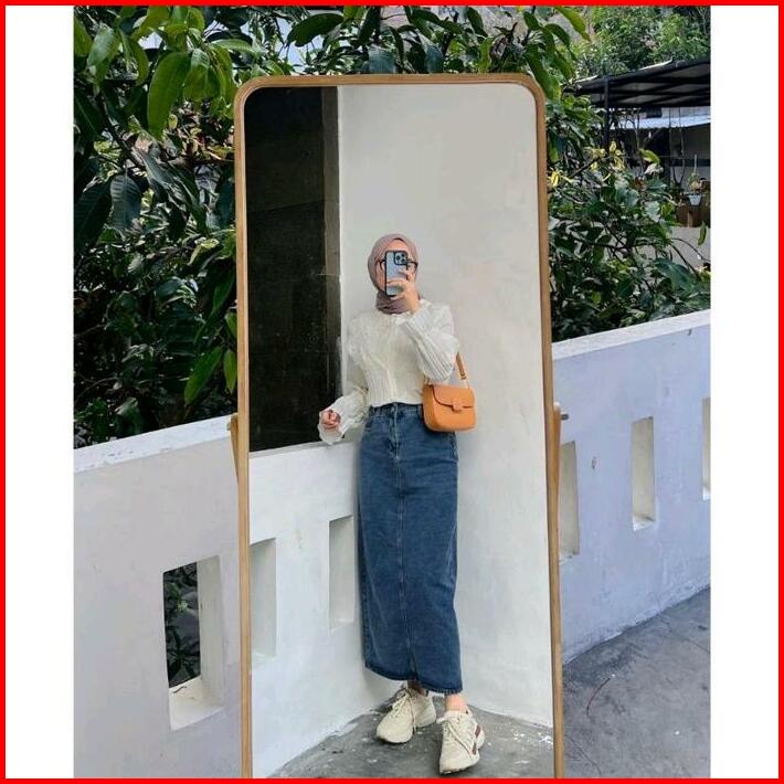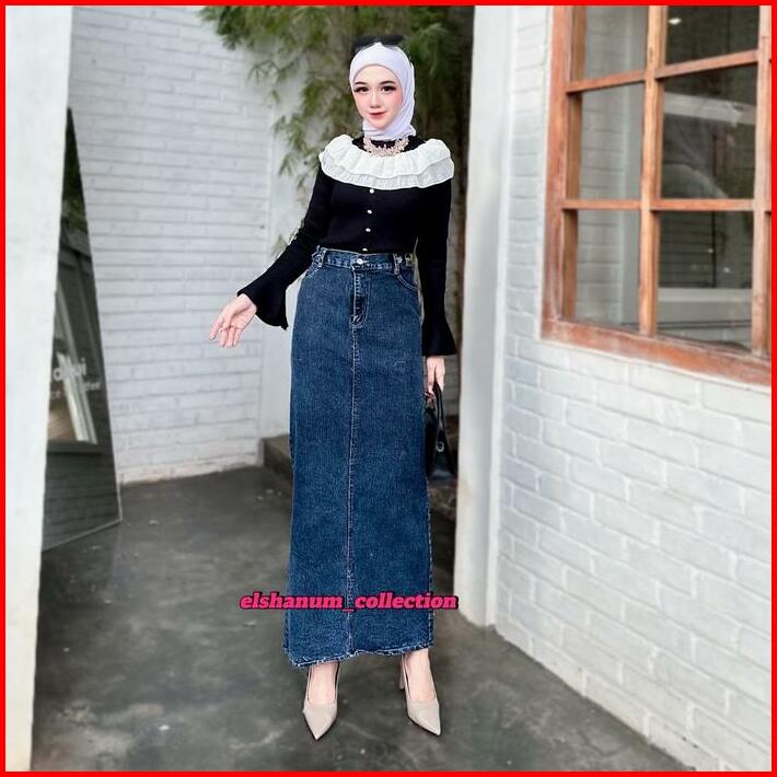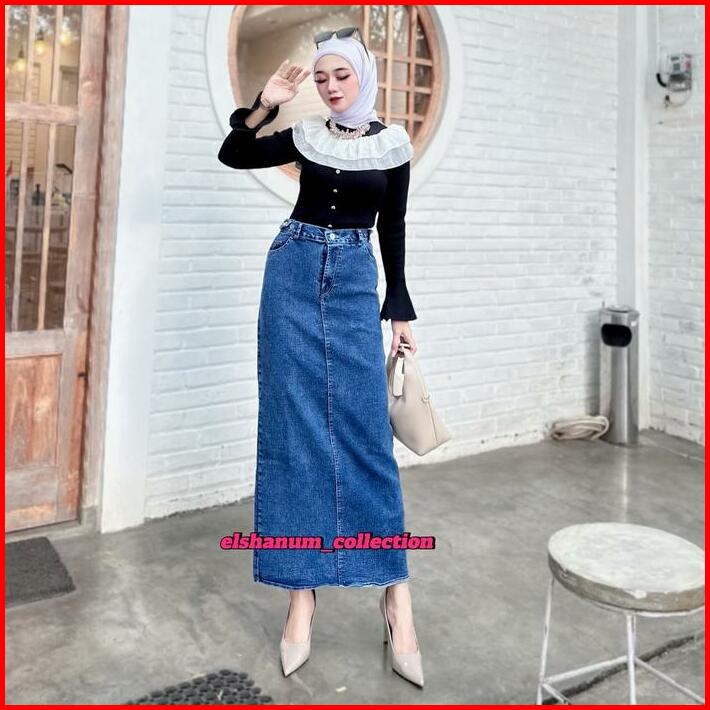 Rok Theana Jeans Skirt Kekinian Panjang Wanita Slim-fitting Korean Style