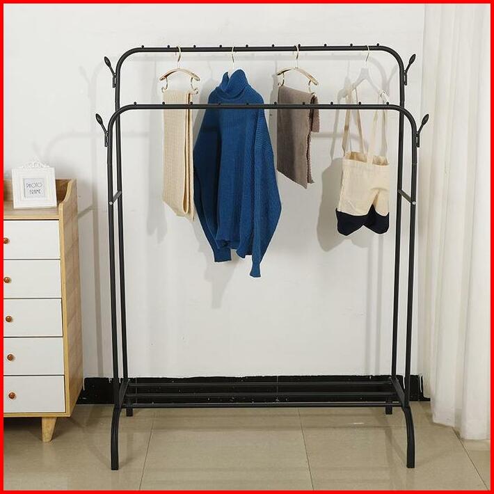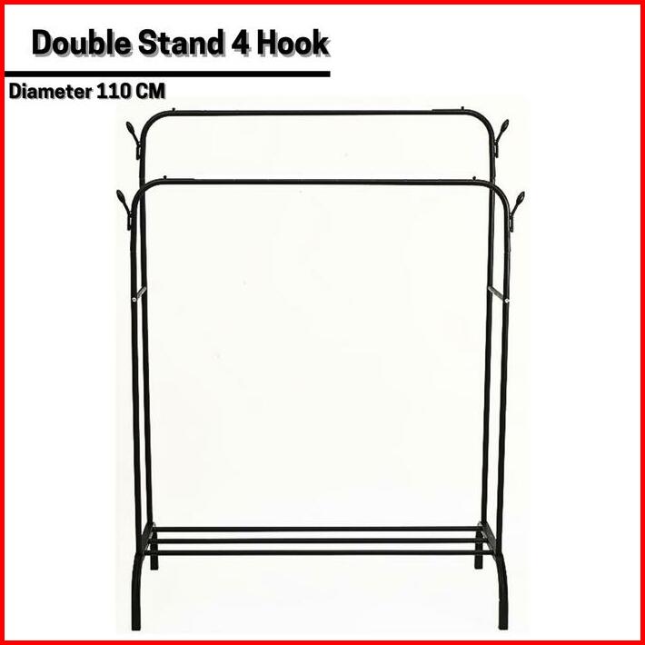 Double Stand Hanger Diameter 110 Cm 4 Hook Rak Gantungan Baju Aesthetic Gantungan Portable Baju Hanger Besi